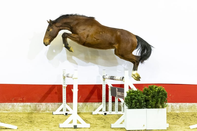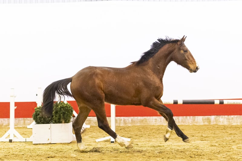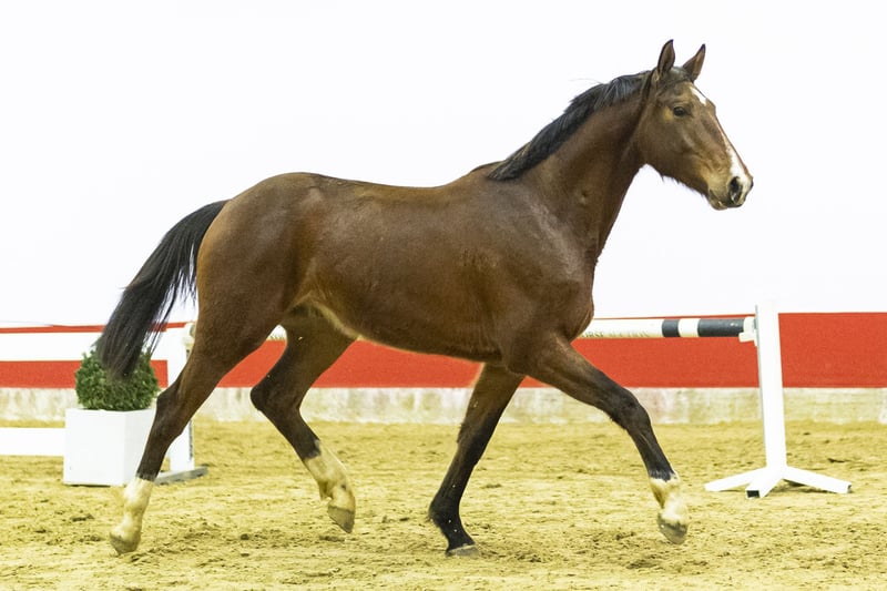 A horse with an energetic way of moving and a big canter. He tries hard over the fences, shows a good attitude on the jumps and move with active hind legs. A modern type with plenty of balance and a willing mindset. Sire Karan van de Heffinck Z (1.40m level) is BWP-approved and a son of Kannan GFE (1.60m Grand Prix, approved KWPN, Holstein, BWP, Oldenburg and others). Kannan has long been one of the leading sires at 1.60m level. Dam Queen Bee van de Bucxtale is by Tangelo van de Zuuthoeve (1.60m Grand Prix, BWP Ambassador and approved in KWPN, Holstein and BWP among others). Second dam Isaura van de Meerputhoeve competed at 1.40m level. This line produced Oasis van de Bucxtale (1.55m CSI5*), Mama Mia van Overis Z (1.45m), Quiz van Overis Z (1.45m), Siouxie Sioux van de Bucxtale (1.45m), Qaboom van de Bucxtale (1.40m) and Piggle van de Bucxtale (1.35m). Further in the damline we find multiple 1.60m Grand Prix horses including West Side van Meerputhoeve (1.60m), Wathnan Quatro (1.60m CSI5*), Felitia DH (1.60m) and Jacobien Dwerse Hagen (1.60m). A family that consistently performs from 1.40m up to 1.60m level.