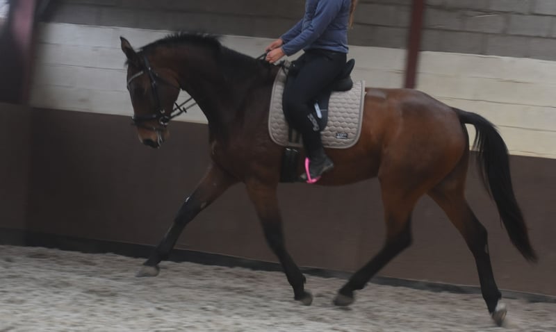 Rechtstreeks van de fokker mochten wij hem overnemen, samen met stalgenootje Valesco vd Melane. Ontmoet Voltaire van de Melane, een imposante en elegante 4,5-jarige ruin van ca. 1.75m, met een uitstekende afstamming: Querido VG x Concorde Z x Tresor D 12. Een paard met een mooie toekomst , geschikt voor zowel sport ( dressuur+ springen) als recreatie. Voltaire is prachtig gebouwd en beschikt over veel uitstraling en souplesse. Het is een vriendelijk, vrolijk en positief paard. Onder het zadel laat hij hier zijn natuurlijke balans en meewerkende karakter zien. Hij zoekt fijn de verbinding met de ruiter en is prettig te rijden. In de omgang is hij hier sterk, maar een echte lieverd. Nuchter, aanhankelijk en altijd in voor veel aandachtHij is hier en voorheen goed verkeers,- en trailermak. Heel erg sociaal. Vrij van ( stal) gebreken. Voltaire is kerngezond en kan enorm goed bewegen, met veel cadans , balans en ruimte. Hij is röntgenologisch en klinisch goedgekeurd, zowel de benen als rug en hals. 9750,- incl. merkzadel en hoofdstel compleet.