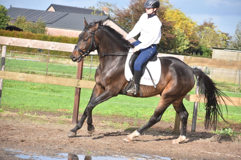 Conoce a Valesco de la Melane. Directamente del criador, tuvimos la oportunidad de adquirirlo, junto con su compañero de establo, Voltaire de la Melane. ¡Qué joya! Un hermoso potro de 4,5 años, de color negro-marrón, de aproximadamente 1,68 m, con una ascendencia impresionante: Lavillion x Akribori x Ulft. Una combinación perfecta tanto para doma como para salto. Valesco es realmente un caballo encantador. En el establo, con su presencia carismática, atrae todas las miradas y disfruta mucho de un mimos. Bajo la silla, demuestra su entusiasmo y carácter equilibrado. Es muy agradable de montar y transmite una sensación segura y suave en la mano. Ha sido sometido a radiografías y revisiones clínicas, con resultado favorable tanto en las patas como en la espalda y el cuello. Gracias a su talento y versatilidad, Valesco puede encarar diferentes disciplinas. Es un caballo con un gran potencial, apto tanto para competición (doma y salto) como para ocio. Ha sido bien entrenado para el tráfico y el transporte en remolque, y es muy sociable. Está libre de defectos (en el establo). Valesco goza de buena salud y se mueve con mucha cadencia, equilibrio y amplitud. Precio: 9.750 € (incluye silla de marca y brida completas).