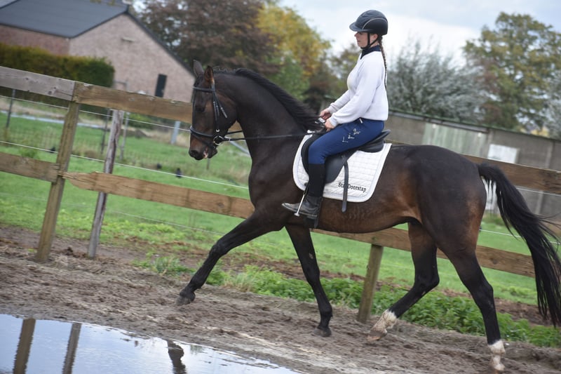 Ontmoet Valesco van de Melane Rechtstreeks van de fokker mochten wij hem overnemen, samen met stalgenoot Voltaire van de Melane. Wat een parel! Een prachtige, zwartbruine 4,5 -jarige ruin van ca. 1.68m, met een aansprekende afstamming: Lavillion x Akribori x Ulft. Een perfecte combi voor zowel dressuur als springen. . Valesco is werkelijk een schat van een paard. Op stal trekt hij met zijn charmante uitstraling alle aandacht en geniet hij volop van een knuffel. Onder het zadel laat hij hier zijn werklust en nuchtere karakter zien. Hij is erg fijn te rijden en biedt zijn ruiter een fijn gevoel in de hand. Hij is röntgenologisch en klinisch goedgekeurd, zowel de benen als rug en hals. Met zijn talent en veelzijdigheid kun je met Valesco meerdere kanten op. Een paard met een mooie toekomst , geschikt voor zowel sport ( dressuur+ springen) als recreatie. Hij is hier en voorheen goed verkeers,- en trailermak. Heel erg sociaal. Vrij van ( stal) gebreken. Valesco is kerngezond en kan enorm goed bewegen, met veel cadans , balans en ruimte. 9750,- incl. merkzadel en hoofdstel compleet.`