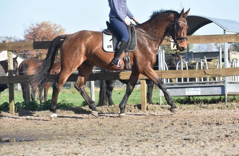 Directement du éleveur, nous avons eu la possibilité de l'acquérir, ainsi que son compagnon de box, Valesco vd Melane. Faites la connaissance de Voltaire van de Melane, un cheval de 4,5 ans, impressionnant et élégant, mesurant environ 1,75 m. Il possède une lignée exceptionnelle : Querido VG x Concorde Z x Tresor D 12. Cliquez ICI pour ses papiers. Un cheval avec un bel avenir, adapté aussi bien pour la compétition (dressage + saut) que pour la loisirs. Voltaire est superbement construit et possède beaucoup d’allure et de souplesse. C’est un cheval amical, joyeux et positif. Sous la selle, il montre sa balance naturelle et son caractère coopératif. Il cherche harmonieusement le contact avec le cavalier et est agréable à monter. Il est ici et auparavant très bien habitué à la circulation et au transport en van. Très sociable. Sans défauts (de boxe). Voltaire est en excellente santé et peut se déplacer avec beaucoup de cadence, d’équilibre et d’espace. Il a été radiographié et examiné cliniquement, avec des résultats favorables, tant pour les membres que pour le dos et le cou. Il a récemment été traité par le vétérinaire dentiste, avec un rapport récent à l’appui. Prix : 9 750 € incluant une selle de marque et un filet complet.