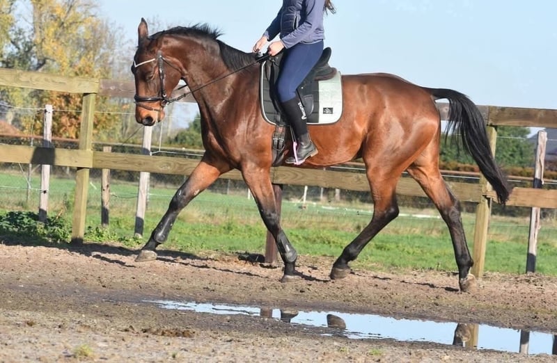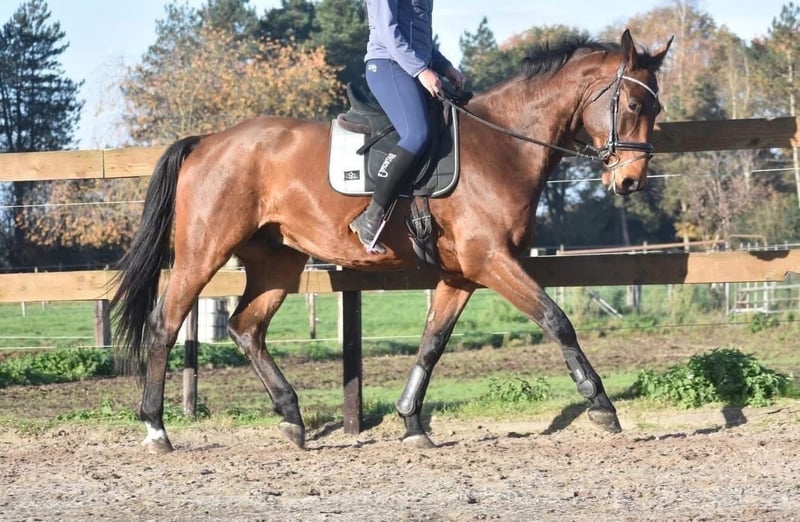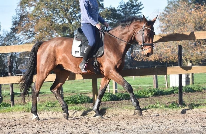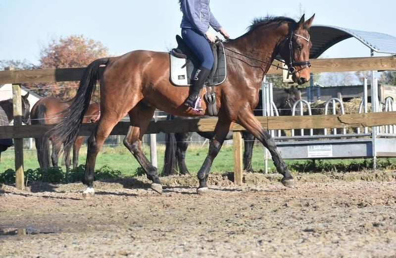 Rechtstreeks van de fokker mochten wij hem overnemen, samen met stalgenootje Valesco vd Melane. Ontmoet Voltaire van de Melane, een imposante en elegante 5-jarige ruin van ca. 1.75m, met een uitstekende afstamming: Querido VG x Concorde Z x Tresor D 12. Klik HIER voor zijn papier. Een paard met een mooie toekomst , geschikt voor zowel sport ( dressuur+ springen) als recreatie. Voltaire is prachtig gebouwd en beschikt over veel uitstraling en souplesse. Het is een vriendelijk, vrolijk en positief paard. Onder het zadel laat hij hier zijn natuurlijke balans en meewerkende karakter zien. Hij zoekt fijn de verbinding met de ruiter en is prettig te rijden. Hij is hier en voorheen goed verkeers,- en trailermak. Heel erg sociaal. Vrij van ( stal) gebreken. Voltaire is kerngezond en kan enorm goed bewegen, met veel cadans , balans en ruimte. Hij is röntgenologisch en klinisch goedgekeurd, zowel de benen als rug en hals. Is onlangs door de tandarts behandeld, in bezit van een recent rapport. € 9750,- incl. merkzadel en hoofdstel compleet.