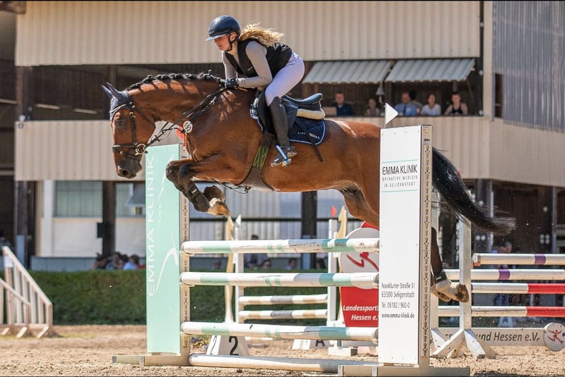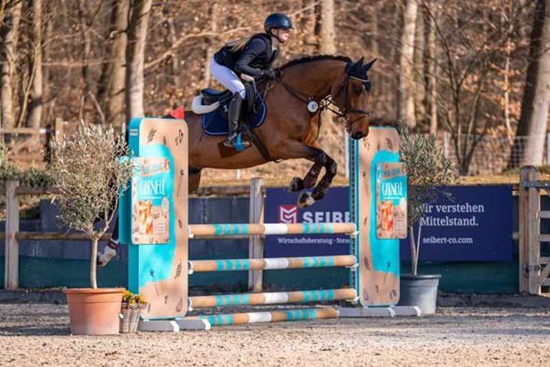 Echo est une véritable force de la nature : avec sa dynamique impressionnante et son athlétisme naturel, il montre toujours beaucoup de puissance dans le parcours. Ses sauts témoignent d'un énorme potentiel, son galop et son déroulement de saut sont marqués par la force, ce qui lui confère une allure légère et souveraine même lors de sauts exigeants. Ce qui distingue particulièrement ce hongre, c'est son courage inébranlable et son état d'esprit orienté vers la performance. Echo relève tous les défis avec confiance et détermination, reste toujours concentré et n'hésite pas à se surpasser. Classé en saut d'obstacles A**.