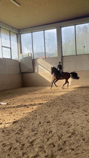 Poiché, a causa di problemi di salute, non posso più montare a cavallo per un periodo indefinito, ho deciso di vendere il mio cavallo. Formazione e vita: Il mio cavallo è arrivato da me all'età di 4 anni direttamente dall'allevatore e da allora è in mio possesso. Ha trascorso complessivamente 1,5 anni in addestramento professionale a tempo pieno. - prima esperienza di gara nel 2023 (6 anni) - piazzamenti fino a 110 cm (8 anni / 2025) - addestramento in dressage fino al livello A - passeggiate - cavallo da gara registrato in Austria Salute e gestione: - ferrato e tranquillo nel trasporto - nessun comportamento problematico in gara - nessun comportamento problematico (quindi niente girare nella stalla, masticare, ecc.) - nessuna dermatite, ecc. - nessuna diagnosi nota (può essere effettuata una visita veterinaria in qualsiasi momento) - stabulazione in box - compatibile con il branco: attualmente è in un box con accesso al pascolo (grande branco misto) o paddock con altri cavalli Posizione attuale: Salisburgo