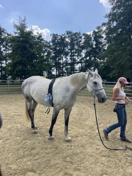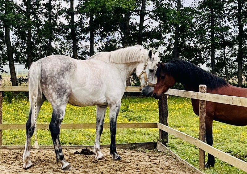 Description Fons is a stunning, sensitive, and exceptionally intelligent gelding who originally comes from the show jumping world. He is no longer suitable for competitive jumping and clearly thrives better in a calm, recreational environment. He enjoys variety, freedom, and mental stimulation. His (first) owner is seeking a new, permanent, and loving home for him. This summer, he underwent intensive groundwork training with excellent results. He learns exceptionally quickly and works gladly with someone who is calm, clear, and confident. He is sold as a leisure horse, ideal for groundwork, liberty dressage, and relaxed outdoor rides. Not suitable for sport or competition! Character Cuddle buddy: gentle, honest, and people-oriented Full of energy / hot, but well-controlled with trust Sensitive, intelligent, and eager to learn Appreciates clear communication and a gentle hand Enjoys thinking along and seeks connection Learning points There are still a few areas where Fons sometimes feels unsure, and we would like to use this as an opportunity to build a strong bond with his new owner. Suitable for: - Advanced rider with a soft hand and clear approach - Someone who enjoys groundwork, free work with horses, and mental contact - First-timer: someone who takes many outdoor rides in nature - Perfect for doing groundwork with Fons alone (for a rider who can no longer or does not want to ride) - Someone who works calmly and consciously - An owner who can provide time, patience, and structure Not suitable for beginners or sport-oriented riders! Housing (very important): Fons needs movement to keep his joints flexible (arthritis in the right hind knee), so he remains healthy with a natural lifestyle: - 24/7 pasture turnout with an open stable, or - Paddock Paradise with daily turnout At least one other horse companion, preferably a herd Plenty of movement and mental stimulation Not suitable for box confinement! He is barefoot and not shod. Health: Fons has developed mild knee issues in the past (arthritis in the right knee), making intensive jumping unsuitable for him. He sometimes compensates diagonally to the left, which can cause light strain in the front. Gentle work such as groundwork, walking, and outdoor rides are very suitable and help keep his joints flexible. What makes Fons so special: Elegant appearance with a gentle character An intelligent ‘thinker’ who truly seeks connection Works eagerly and learns incredibly fast Will become a golden partner for the right person Interested? Fons is located in Vremde (BE) and is for sale for €3,250, including groundwork sessions by appointment. Videos & additional photos available upon request. Contact us to meet Fons.