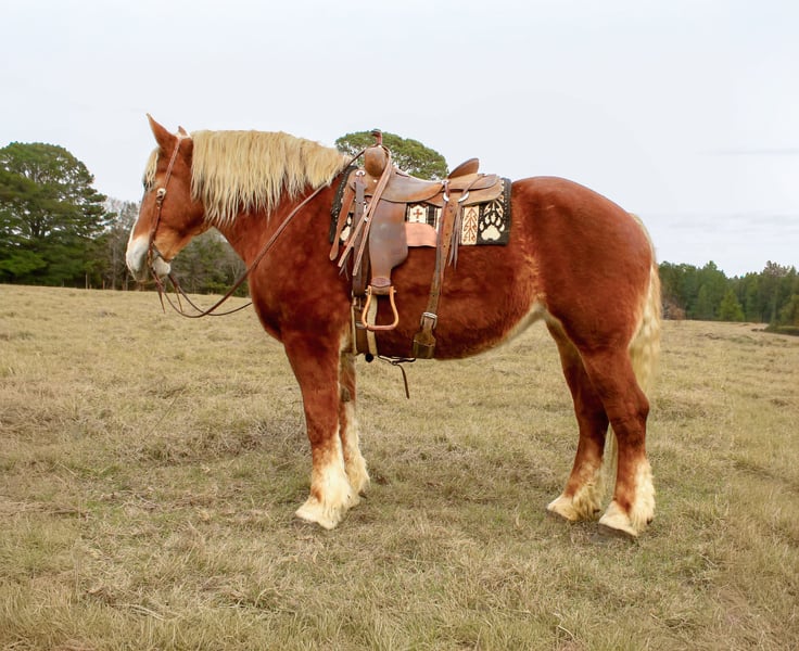 ONLINE AUCTION Place your bids at www.PlatinumEquineAuction.com Starting Bid $3500 Auction ends January 4th, 2025 Need a new saddle? Check out White Rock Saddles on our website or Facebook Meet Bella a stunning Belgian mare with a heart of gold. At 10 years old and standing 16.2 hands tall, Bella is the perfect combination of size and grace. She has a calm and willing temperament, making her ideal for riders of all levels. Bella has extensive trail experience and is confident in various terrains. Whether you're navigating wooded paths, crossing streams, or enjoying open fields, Bella will take care of you. She is always eager to please and loves spending time people. Bella is also broke to drive both single and double and has been used as a work horse as well! Don't miss the opportunity to make Bella your own. Located in Rusk TX, nationwide shipping is available! Please reach out to Rachel with TR Livestock 605-370-4644 if you have any questions! ONLINE AUCTION Place your bids at www.PlatinumEquineAuction.com Starting Bid $3500 Auction ends January 4th, 2025 Need a new saddle? Check out White Rock Saddles on our website or Facebook