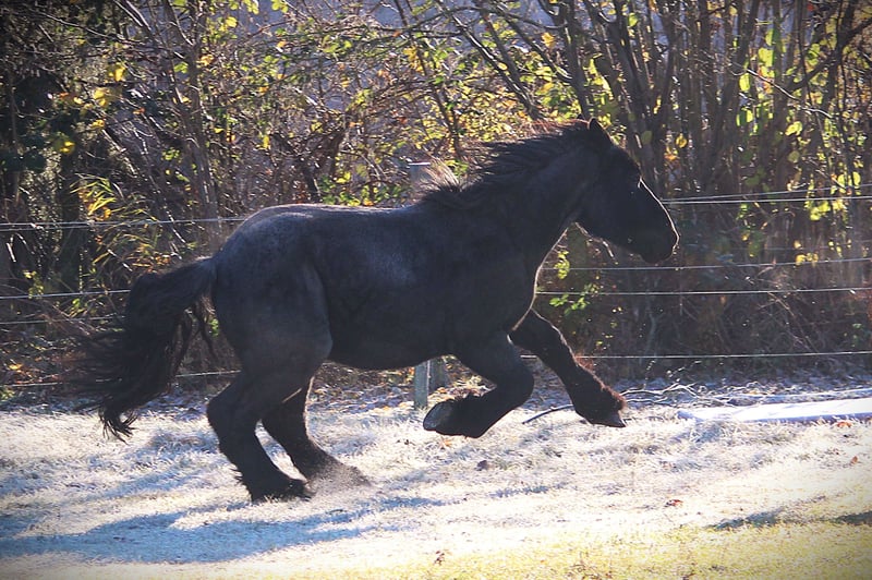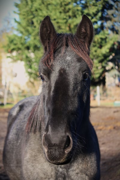 Jan ist ein intelligentes, feinfühliges Jungpferd, das seinem Menschen aufmerksam begegnet. Anfangs kann er vorsichtig sein, weiß aber liebevollen, gelassenen Umgang zu schätzen und sucht dann sanft die Nähe zum Menschen. Bei zu viel Druck weicht er eher aus – mit ruhiger, fairer Arbeit zeigt er sich motiviert und sehr lernfähig. Der Wallach ist dem Alter entsprechend gearbeitet. Er kennt Geländegänge (auch alleine), lässt sich gut verladen, ist anlongiert, durfte auch bereits die longierte Dual-Aktivierung sowie erste Zirkustricks kennenlernen. Küsschen gibt er gerne. Jan fällt sehr auf durch seine seltene Färbung. Er ist ein Blue Roan (auch als Rappschimmel bezeichnet) und wechselt zwischen den Jahreszeiten die Fellfarbe. Im Winter wirkt er fast schwarz, im Sommer färben sich Hals und Rumpf grau. Jans Mutter ist ein erfolgreiches Dressurpferd und läuft Dressurturniere in den Niederlanden. Sie konnte bereits Siege und Platzierungen bis zur Klasse M2 erzielen und war zudem einmal Allround-Champion auf nationaler Ebene. Auch frühere Nachkommen der Mutter sind sportlich erfolgreich. Der Vater ist Tejo van het Hermeshof, ein typvoller Vertreter seiner Rasse (weitere Infos zum Vater: https://www.hermeshof.be/en/tejo/). Geimpft, entwurmt. Zähne sind behandelt (Wolfszähne gezogen), außerdem osteopathisch behandelt.