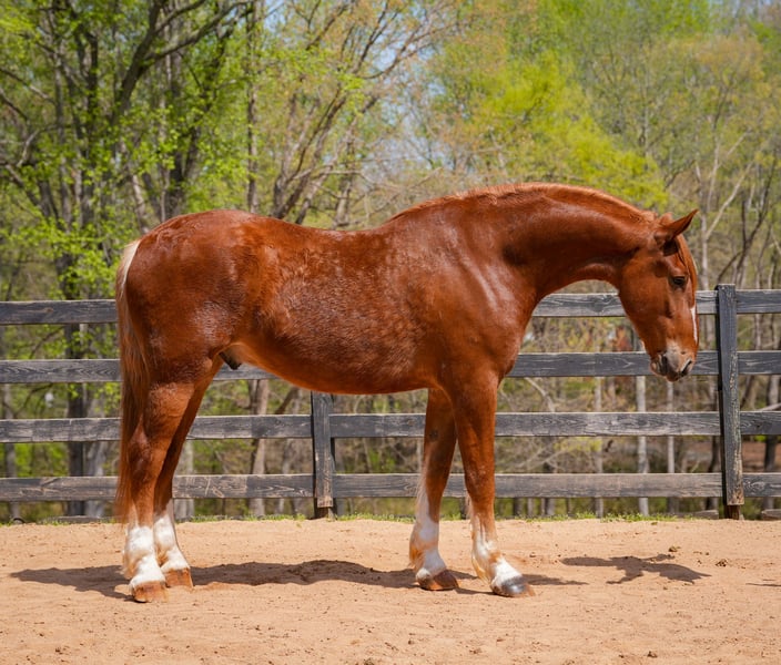 ▪️▫️◾️𝐭𝐡𝐞 𝑴𝒂𝒚 𝐒𝐞𝐥𝐞𝐜𝐭◾️▫️▪️ Happening now thru MONDAY | MAY 4th - Available EXCLUSIVELY on HorseBid's website! For more details and to register visit: www.Horsebid.com CONSIGNOR CONTACT: CAROLINA SPORT HORSES 704-249-8500 LOCATION: Clover, SC BREED: BELGIAN DRAFT X REGISTERED: No COLOR: SORREL HEIGHT: 17.3 AGE: 4 GENDER: Gelding 🐴 TEMPLETON – A Giant in Size… Gentle in Mind Templeton stands an impressive 17.3 hands tall — a true giant with the bone, substance, and presence that make people stop and stare. And if you’re being honest… That size can feel intimidating. Especially if you’re not 25 anymore. Especially if you’ve ever been on one that felt powerful in the wrong way. Here’s what matters: Templeton does not ride like a giant. He rides quiet. He rides steady. He rides deliberate. The biggest fear most riders carry isn’t the height — it’s the loss of control. “What if he’s too much?” “What if he moves quicker than I expect?” “What if I can’t stop him when I need to?” Templeton is not a horse that moves without his rider. He stands quietly to mount and does not step off until asked. He walks on a relaxed rein. His transitions are smooth and predictable. He does not rush, and he does not react unnecessarily. He gives you time. And time is what builds confidence. For riders who quietly worry about falling… About injury… About not bouncing like they once did… Templeton’s greatest strength isn’t his size — it’s his mind. In the arena, he is uncomplicated and steady. On the trail, he is observant but not spooky. He handles new environments with a calm, level demeanor and does not look for reasons to be reactive. And let’s address the question many buyers won’t say out loud: “What if he changes once he leaves your place?” Templeton has proven consistency. He has been exposed to real situations and ridden in different settings without changing his temperament. He is the same horse day after day. He is not here to test you. He is here to carry you safely and confidently. For the rider who wants presence without pressure… Size without stress… And a mount that makes you feel secure instead of uncertain… Templeton offers something far more valuable than height. He offers peace of mind. And peace of mind is what allows you to truly enjoy riding again. *All horses at CSH enjoy 24/7 turnout with a mixed herd when not in training. Training weeks they spend 3 days inside for work and 3 days off to relax. We do not feed grain but the horses to have 24/7 access to premium western alfalfa. All horses are up to date with vaccinations and worming. They are all on a 6 week farrier rotation as well and some are shod due to our rocky trails. We only train in a loose ring snaffle in western tack and a loose ring, French link or full cheek snaffle in English. Feel free to call or text me with any questions about horse care or training.* *All of our descriptions are OUR OPINION and ARE NOT FACTS. They represent how the horse responded and behaved while in our care. Horses can change at any time as they are living, breathing animals. There are no warranties expressed or implied via the descriptions above*PLEASE READ OUR BUYERS GUIDE PRIOR TO BUYING OR BIDDING ON ANY HORSE WE HAVE AVAILABLE. Interested in bringing Boaz home? Give us a call today! Please take the time to read our Buyers Guide to answer any questions or concerns you may have. Contact Us Call or TEXT 704.249.8500