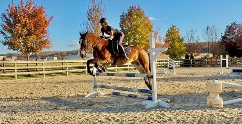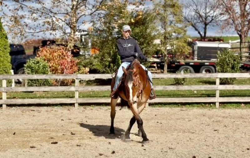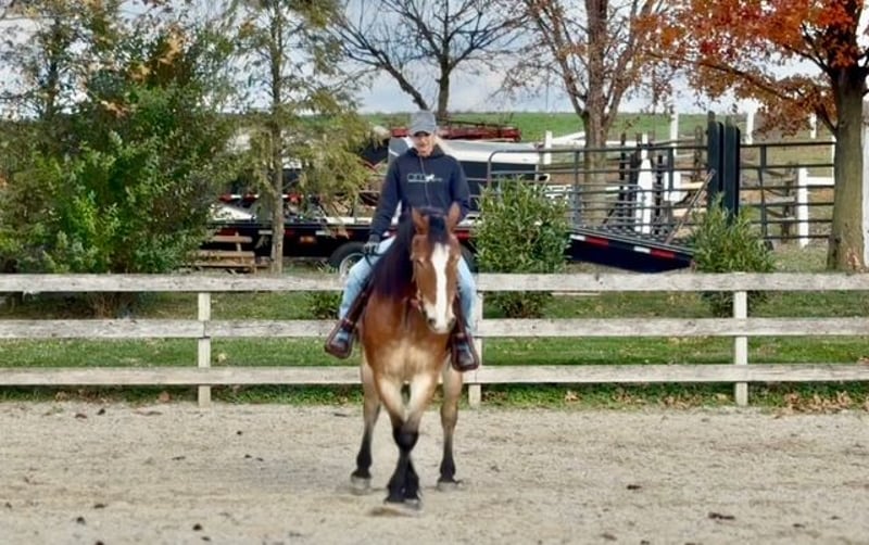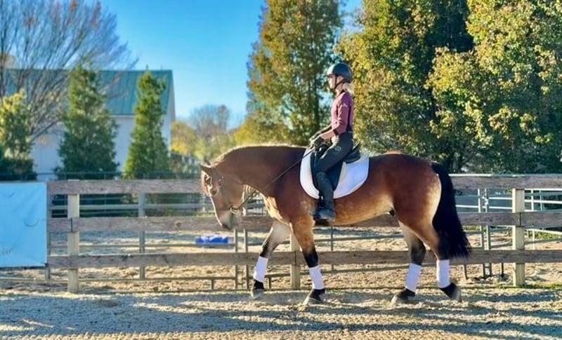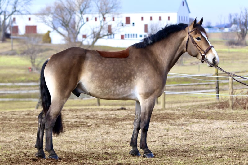 "AVAILABLE ON ONLINE HORSE AUCTION AT www.MagicHorseAuction.com BIDDING OPEN NOW thru TUESDAY | FEBRUARY 3RD! BUY IT NOW AVAILABLE! *Final price will be determined on auction site* CONSIGNOR CONTACT INFO: Juli Hubik #717-875-2061 LOCATION: Gap, PA 17527 " "Meet ✨Waylon’s Iron✨ (aka Wayne)💪🏽 This outstanding gelding is a five-year-old Belgian/Morgan cross, standing right around 16 hands. With a bold blaze, pretty coloring, and good conformation, he gets noticed everywhere he goes. Wayne rides English, Western, lays down on command, and drives! He’s as handy as they come and doesn’t mind a full day of work — in fact, he seems to thrive on it. He’s had enough miles under his belt to be reliable and sensible. Wayne is an absolute hunk, he’s built sturdy, and he’s built to last. Wayne has been well educated and has quite a few buttons! He spins, side passes, leg yields, and turns on the haunches. He’s adjustable with just a light feel through your hand and leg. He’s a smart ride and so fun to bring along — making him enjoyable for riders with some experience. In the arena, he’s probably not suitable for a complete beginner yet, simply because he is still learning himself. However, we could see him being a great fit for a confident AA or JR working with a trainer, or a professional who wants a smart young horse to make into something great. He tends to have more of a “mosey along” attitude on the trail, so in that scenario, he could definitely have the husband thrown on for a fun ride out. In the arena, he has a good work ethic — a nice in-between of having his own motor while still having brakes and adjustability. He is very sensible, though not a complete deadhead, and still just a baby learning the ropes. He has a lot of confidence across a variety of disciplines and offers a great feel under saddle. This pretty gelding neck reins as well as direct reins, he’s learning to go on the bit, and he already moves off of leg extremely well. He’s the kind you can put plenty of leg on without him launching you into space or trying to be a racehorse. He reads his rider’s body language very well for his age and is responsive to your seat, posting speed, a half halt, or a slight wiggle of the rein to bend, etc. He sometimes needs to be reminded to slow down his brain, because he always wants to please and do the right thing, which can lead to some anticipation. He’s a horse that will do well with someone who can keep things interesting for him and give him a job. He doesn’t mind a hard day of work, and we could see him being great for a ranch outfit, someone who does lots of trails, fox hunting, hunter paces, or even someone who wants to turn him into a dressage master! The options are truly endless for him, and he has potential in every way. He is loaded with talent, and we want him to go to the perfect fit! Over jumps, Wayne has been started slowly and correctly, and he has been exposed to a variety of different environments. He’s the same horse off property as he is at home. He’s been out on hunter paces and cross-country schooling, and this guy totally blew us away with his natural talent. He’s guaranteed to get you to the other side of the jump and is always the type to go for it with cute form and his ears forward! He’s been over poles, cross rails, boxes, and oxers in the ring, as well as logs, roll tops, coops, and tubes out on the trail and cross country. He’s started doing simple combinations and exercises and is doing fantastic! He hasn’t had his legs jumped off, and his introduction to jumping has been slow and focused on the basics. Out in the field, he will follow or lead over jumps without hesitation. Wayne is one that will get better every single time you practice and blow you away with his honesty and natural talent. On the trail, Wayne is happy to go wherever you put him. He doesn’t get too forward or hot, and you can walk him on a loose rein. He’s like a small, compact semi-truck that will go through or over anything! He will lead the way through swampy, muddy creeks or go in the river for a dip. He’s been over bridges, out in open fields, on wooded, winding trails, and exposed to hikers, bikers, and all sorts of wildlife. He is traffic-safe and equipment-proof. We’ve ridden him into town, right past live construction sites, and he didn’t bat an eye. He’s been to the store, the gas station, and has even gone through the drive-thru! He has a good brain, is surefooted, and is the same horse every time you take him out. He’s just as unfaltering under harness and is used to being hitched up solo and taken out. He’s light to drive through your hands and responds to voice signals. In the barn, Wayne has good manners and is respectful and obedient. He has zero vices in the barn, in turnout, or in his stall. He’s a gentleman to groom, tack up, and bathe, and he’s always a sweetheart for the farrier and vet. He’s in your pocket with a people-loving personality and will stand for hours to get attention and be doted over. He loads right into the trailer with no issues or hesitation — and trailers quiet as a mouse. This is a fantastic young prospect with all the potential to continue in any direction. If you want a handy horse with a good work ethic and a will to please, Wayne is your boy! UTD on shots, farrier, Coggins, dentist, and deworming. "
