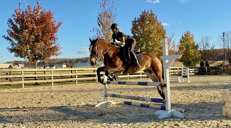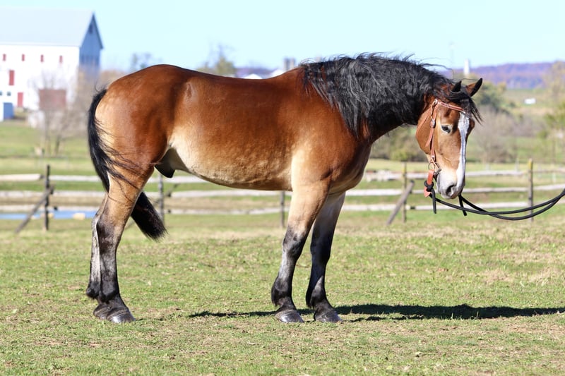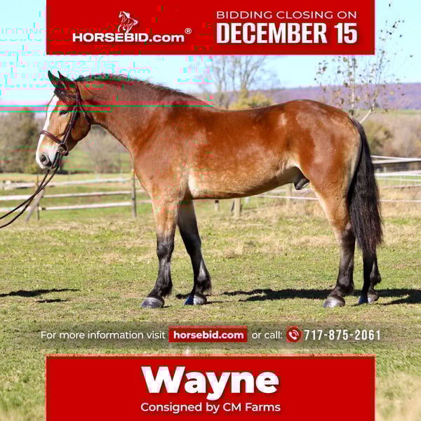 🎄𝐓𝐇𝐄 𝑯𝒐𝒍𝒊𝒅𝒂𝒚 𝐂𝐋𝐀𝐒𝐒𝐈𝐂🎄 Happening now thru MONDAY | DECEMBER 15th - Available EXCLUSIVELY on HorseBid's website! For more details and to register visit: www.Horsebid.com CONSIGNOR CONTACT: CM Farms 717-875-2061 LOCATION: Gap, PA BREED: Belgian/Morgan X REGISTERED: No REGISTERED NAME: Wayne COLOR: Bay HEIGHT: 16 AGE: 4 GENDER: Gelding Meet ✨Wayne✨💪🏽 This outstanding gelding is a four-year-old Belgian/Morgan cross, standing right around 16 hands. With a bold blaze, pretty coloring, and good conformation, he gets noticed everywhere he goes. Wayne rides English, Western, lays down on command, and drives! He’s as handy as they come and doesn’t mind a full day of work — in fact, he thrives on it. He’s had enough miles under his belt to be reliable and sensible, with a solid brain and sturdy build that’s made to last. Wayne has been well educated and has quite a few buttons! He spins, side passes, leg yields, and turns on the haunches. He’s adjustable with just a light feel through your hand and leg. He’s a smart, willing ride and such a fun one to bring along — making him enjoyable for riders with some experience. ⭐️ In the arena, he’s probably not the right match for a total beginner just yet, simply because he’s still learning himself. He always tries his heart out. With a confident rider or someone working alongside a trainer, he really shines and keeps getting better every ride. He’s the kind who listens, learns fast, and wants to get it right. We could see him being a great fit for a confident AA or JR in a program, or a professional who wants a smart, capable young horse to shape into something special. He’s sensible and steady, just not a total deadhead — a young horse with a good brain and a bright future. 🤩 This pretty gelding neck reins as well as direct reins, he’s learning to go on the bit, and he already moves off the leg extremely well. He’s the kind you can put plenty of leg on without him launching into space or trying to be a racehorse. He reads his rider’s body language impressively for his age and is responsive to your seat, posting rhythm, a half halt, or even a little wiggle of the rein to bend. Sometimes he needs to be reminded to slow down his brain, simply because he’s so eager to please. He’s the type who thrives when he’s given a job and kept thinking — he loves to work and be part of the action. Wayne is the kind that could go in so many directions — ranch work, trails, fox hunting, hunter paces, or even dressage. He’s loaded with talent and heart, and we can’t wait to see where he goes next. Over fences, Wayne’s been started slowly and correctly, with exposure to a variety of environments. He’s the same horse off property as he is at home. He’s been out on hunter paces and cross-country schooling, and he blew us away with his natural talent. He’s honest, athletic, and always game — with cute form and ears pricked the whole time. He’s jumped all kinds of obstacles: poles, cross rails, oxers, logs, coops, and boxes, and he’s just getting started on combinations. Every time out, he shows more confidence and capability. On the trail, Wayne is steady and surefooted. He’s happy to lead or follow, walks on a loose rein, and doesn’t get hot or spooky. He’ll go through mud, water, bridges, or traffic without fuss — he’s even been to town and through the drive-thru! Under harness, he’s just as reliable, driving single and responding nicely to voice cues.☺️ In the barn, Wayne’s a gentleman through and through. No vices, easy to handle, loves attention, and stands like a statue for grooming, tacking, bathing, vet, and farrier. He loads and trailers like a pro and settles anywhere you take him. Wayne is a fantastic young horse with all the right pieces — good brain, great work ethic, and tons of potential. If you’re looking for a handy, hard-working partner with a will to please, Wayne is your guy. UTD on shots, farrier, Coggins, dentist, and deworming — PPEs welcome.🤗