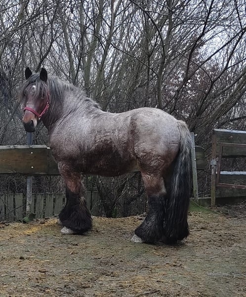 Belgisch Kaltblutwallach , 5 jährig , Braunschimmel, sehr gut ein- und zweispännig gefahren , ist dabei tüchtig aber nicht übereilig, wenig geritten, absolut verkehrssicher, wird bereits als Verlasspferd bei der Ausbilldung anderer Pferde verwendet, kennt Landmaschinen, Verkehr, Hunde, Kinder, Horsemanship/ RoundPen