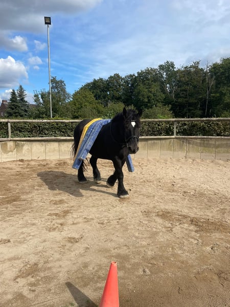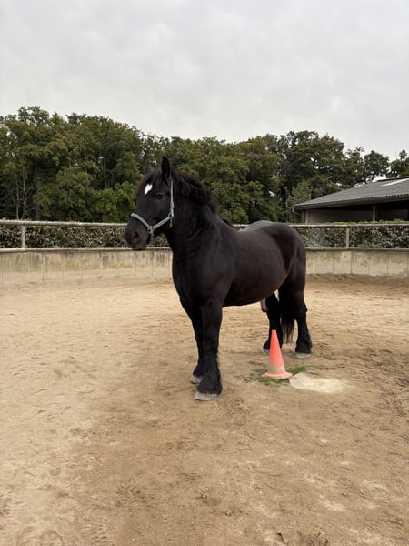 Max is a 9-year-old Belgian Draft gelding (approximately 16.1 hh, weighing around 1,870 lbs) — a real eye-catcher with an impressive presence and a heart of gold. He is well-started under saddle, has excellent ground work skills, and performs calmness training with ease. Lunging from the ground is no problem for him either, making Max an ideal candidate as a leisure riding horse or even as a logging horse. Max has a sensitive nature and needs a confident, calm handler who can provide him with trust and guidance. Although he appears strong, he is more of a cautious type who tends to seek retreat in uncertain situations. He has never shown any malice — he simply needs someone to give him security and lead him gently. He is currently ridden but not regularly, so a trial ride is only possible under certain conditions. In the herd, Max is social, playful, and friendly — he loves to frolic with his companions, and we are looking for a suitable equine friend for him in his new home. He has previously been kept with geldings; we cannot comment on his compatibility with mares. Health-wise, Max tests positive for PSSM1 and has a papilloma (wart) on his neck, which is typical for draft horses but currently not severe. Both conditions can be well managed with proper care and feeding. A recent full blood panel was performed, with no abnormalities detected. For Max, the saying “location before price” definitely applies! He is looking for a home where his sensitive soul is recognized, where he can feel secure, and where his gentle nature is appreciated. Max is located in Krefeld-Forstwald. I am happy to send additional photos and videos upon request. ❤️