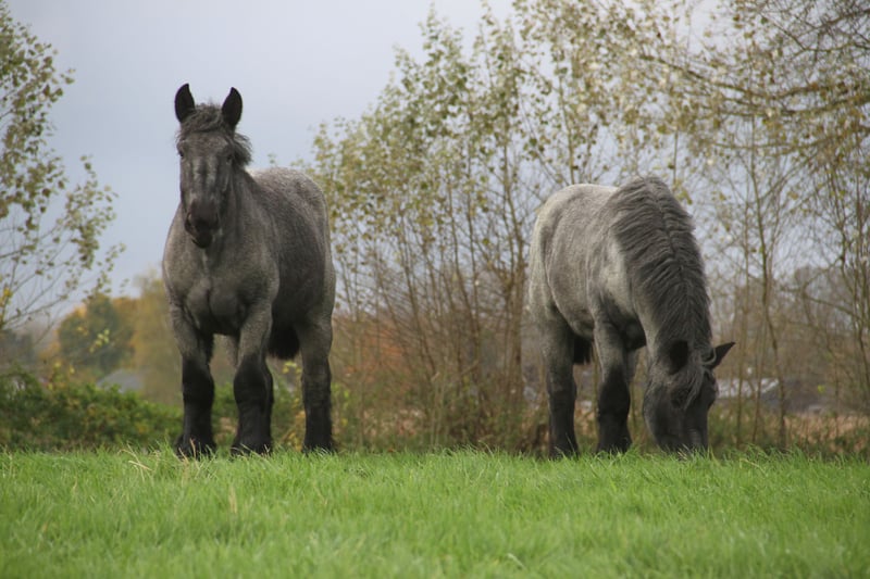 Blauwschimmel trekpaard merrie geboren 20/04/2022 geleerd op kordeel, zowel enkel als dubbelspan. eerlijk en werkwillig karakter.