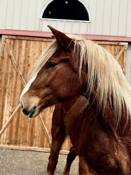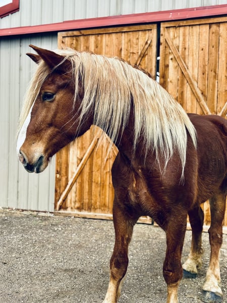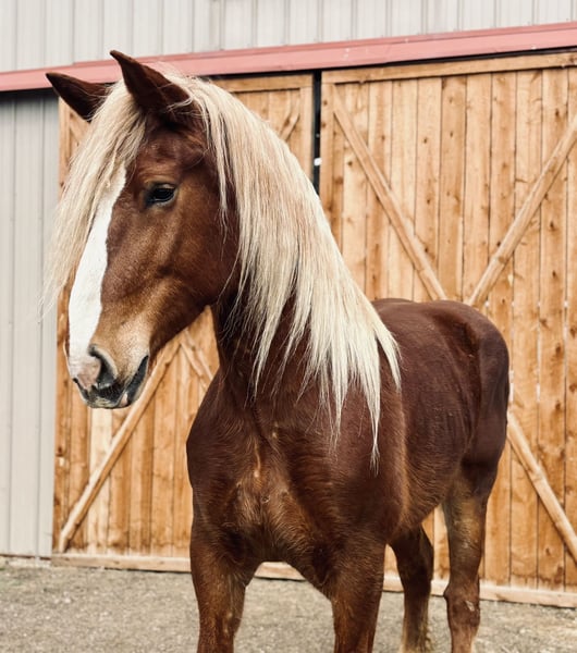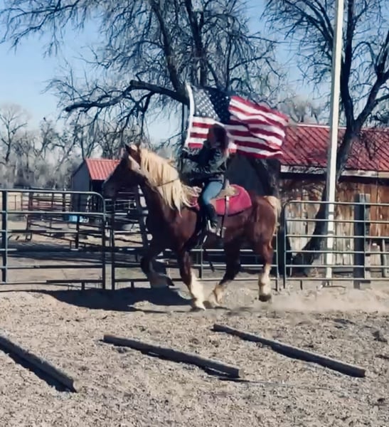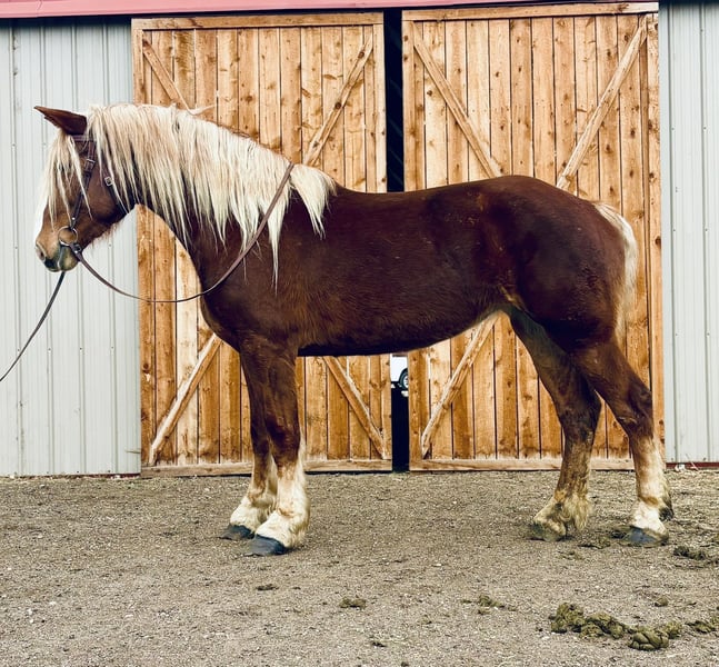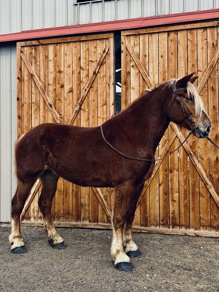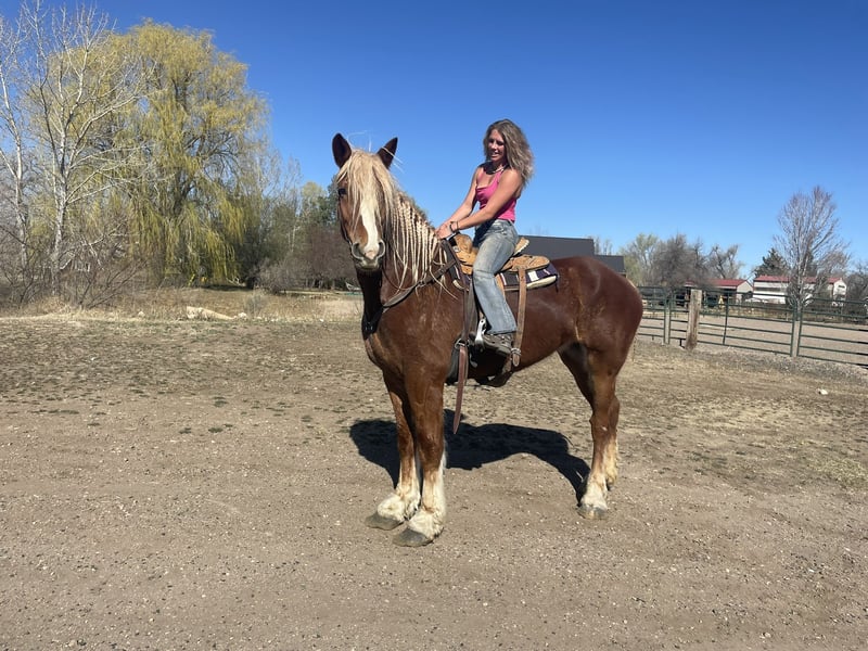 "AVAILABLE ON ONLINE HORSE AUCTION AT www DOT MagicHorseAuction DOT com BIDDING OPEN NOW thru TUESDAY | MARCH 31st! BUY IT NOW AVAILABLE! *Final price will be determined on auction site* CONSIGNOR CONTACT INFO: Dynamite horses #970-632-3644 LOCATION: fort Collins, CO " "Freedom 🇺🇸 Freedom is a 5-year-old, 18.2 hand Belgian mare with an absolute heart of gold. She truly is what dreams are made of—from her incredible disposition and sweet, kind personality to her willing attitude and striking looks. This mare turns heads everywhere she goes and has the temperament to match her beauty. Freedom has been exposed to all aspects of trail life, from mountain rides to town riding. She confidently rides alongside bikes, strollers, runners, and heavy traffic without hesitation. She has passed semis without flinching, crossed bridges, gone under tunnels, and walked straight through rivers like it’s nothing. She’s steady, reliable, and takes everything in stride. Not only is Freedom a trail pro, but she also has a solid foundation in the arena. She has a smooth, comfortable walk, jog, and lope, and works beautifully off your voice. She stops off your seat and voice cues and is incredibly thoughtful—she’s even learned to stop and wait if you lose your balance, giving you time to regain your seat. Freedom is well-mannered and easy to handle. She lowers her head willingly for the halter and bridle and will side-pass to the mounting block, standing patiently while you get on. She goes barefoot with strong, solid feet and handles farrier work like a pro, even without stocks. She picks up her feet easily and stands quietly. On the ground, Freedom is just as special. She stands to be brushed and loved on, ties quietly for as long as needed, and genuinely enjoys attention. She has also been exposed to flags, tarps, and the beginning stages of collection work. She rides both English and Western and looks beautiful doing either. If you’re looking for a dependable, kind-hearted mare with both brains and beauty, Freedom is one you don’t want to miss. Come see this incredible mare for yourself—you’ll fall in love with her just as we have! "