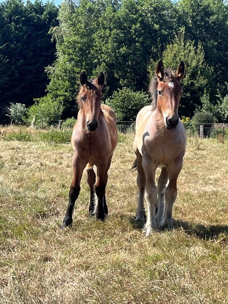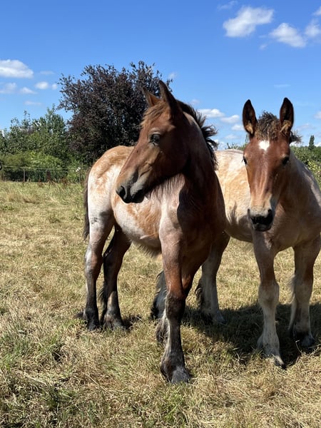 Ben je op zoek naar een grote knuffelbeer en een vriend voor het leven? Dan is Kamiel uiterst geschikt voor jou! Kamiel van den Bunder is een bruinschimmel hengstveulen geboren op 30 april 2025. Hij is bij ons geboren en hierdoor ook goed in de hand sinds dag 1 op deze aardbol. Kamiel is een heel lief en rustig veulen, houdt van knuffelen en is vooral zeer zachtaardig. Kamiel heeft als moeder Angela van’t Ravensgat. (Foto 11) Angela zelf heeft ook een gouden karakter en kon op verschillende prijskampen ook reeds enkele titels op haar naam schrijven. Zo behaalde ze verschillende mooie eerste plaatsen in o.a. IJzendijke, Ghlin, Deinze, Evergem, Merchtem, Oudenaarde en Vilvoorde en werd ze bovendien ook nog bekroond tot Kampioene Evergem 2019! Ondanks haar leeftijd, blijft Angela ook zeer goed behouden en bewegen. De vader van Kamiel is Scott van de Voshoek (Foto 12 & 13). Scott zelf werd als jaarling kampioen in Oudenaarde, Deinze & Waasmunster! Hij heeft ook een zeer explosieve draf, die we ook terug zien in Kamiel. Kamiel zou uiterst geschikt zijn als recreatief rij en wandelpaard, aangespannen voor de kar, therapiepaard, weidemaatje voor een andere ruin of merrie,… Kamiel werd ondertussen reeds gespeend van zijn mama en heeft hier geen last van ondervonden