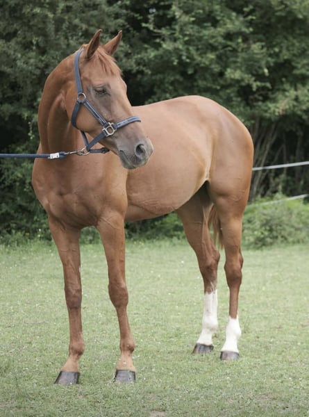 PHARA D’20 Very attractive model 🧬 Sire: JERICHO VAN DE MALTAHOEVE (Nabab de Rêve) / Dam by GOTTWALD 🧬 11 years old / 17.3 hh Retired due to tendinitis, currently in recovery Ready to be ridden at 1.10 m Ideal for breeding Easy to handle daily, well-balanced temperament Up to date with all vaccinations and treatments More information available upon request.