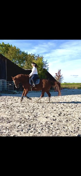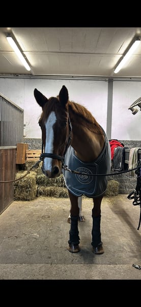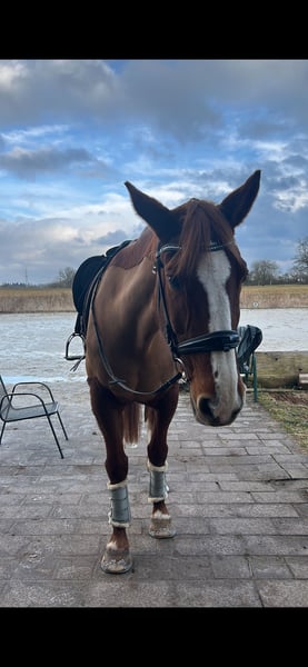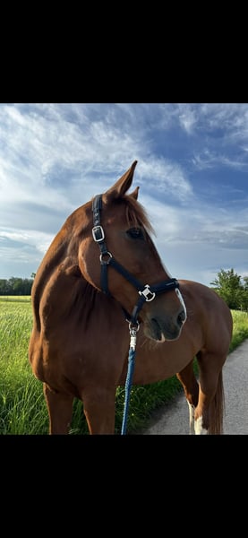 Für meine 19 jährige, ca. 1,73 m große, top fitte Fuchsstute (Belgisches Warmblut) suche ich ein neues Zuhause, in dem sie nicht als Sportgerät, sondern als Freund und Familienmitglied gesehen wird. Sie ist ein sanftes Riesenherz, das sobald Vertrauen gewachsen ist, ihre ganze Liebe schenkt. Kinder gegenüber zeigt sie sich besonders geduldig und freundlich. Beim Schmied ist sie super brav, sowie beim Verladen. Im Gelände ist sie verlässlich unterwegs und ist kaum aus der Ruhe zu bringen. Und wenn eine Fahne mal zu sehr flackert, ist sie immer absolut händelbar. Kein steigen/bocken oder sonstiges. Höchstens bleibt sie mal stehen oder geht 2-3 Schritte rückwärts was mit gutem Zureden und ruhe bewahren nach wenigen Sekunden gelöst ist. Als ehemaliges Springpferd sind kleinere Sprünge überhaupt kein Thema- allerdings schon lange nicht mehr gemacht da es mir selbst keinen Spaß macht. Dressurlich ein ordentliches A-Niveau. Aber auch z.B Außengalopp usw kann sie. Sie hat auch schon einzelnen Kindern das reiten beigebracht, und ist hierbei sehr vorsichtig. Sobald man einmal ihr Vertrauen gewonnen hat (was eine gewisse Zeit dauern kann) geht sie mit einem durchs Feuer. Meine Stute ist seit wenigen Monaten Barhuf unterwegs, davor nur vorne beschlagen was beides gut funktioniert. Seit Jahren steht sie in einer sehr großen Paddockbox mit täglich mindestens 6h Koppelgang, daher wünsche ich mir entweder das oder einen Offenstall/Aktivstall. Sämtliches Equipment – Sattel, Trense, Decken, Gamaschen, Bandagen usw kann bei Bedarf dazu erworben werden