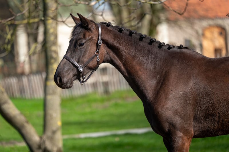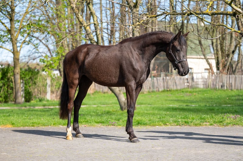 A stunning black mare with excellent conformation and a sporty build. This mare is easy to handle and has a friendly, affectionate nature. We believe she could be a very interesting acquisition for someone who appreciates her true value today and can provide her with a solid further education.