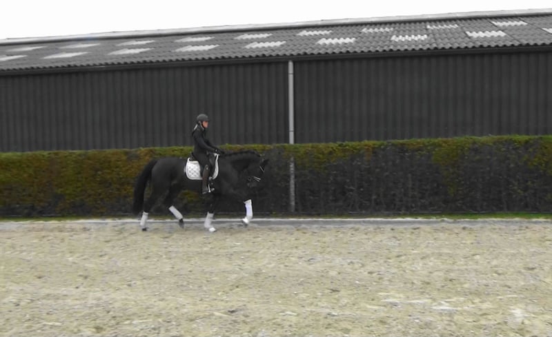 3,5 jr Dunkelbraune Stute. Ca. 1.67 m. Glamourdale x Aaron ( S*** dressur). BWP Witney ist seit 3 monaten unter Sattel, und macht alles gut mit. Auch im umgang sehr angenahmes Pferd. Sie hat 3 gga, mit sehr gute galop. Sie hat kein unarten im Stall. Sehr gute Tüv incl. Rücken und Genick vorhanden. Einfach zu verladen. Preisvorstellung: € 10.500 vhb. Pferd steht in Kinrooi ( b), ca. 50 km von Aachen und Mönchengladbach.