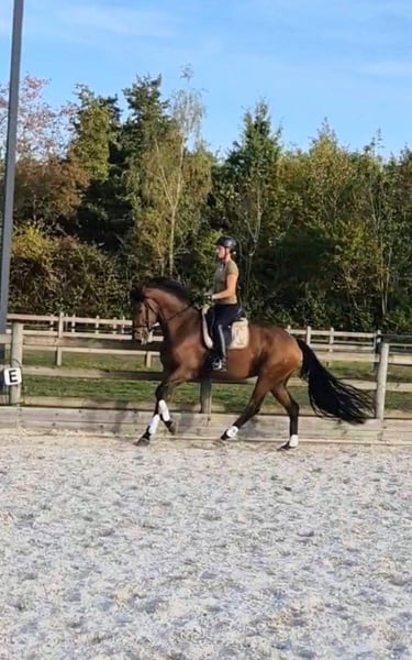 Video: youtube.com/shorts/-i-l6Dkh-bc?si=7vOrxlf6DcOsAack Knappe 3 jarige dressuur gefokte merrie - Zoom-In x Fürstenball - Schoft = 1m72 - Voldoende werklust en heel betrouwbaar, ook geschikt voor een meer onzekere ruiter. - Normale prijsklasse - Langere proefperiode vóór aankoop of ter beschikkingstelling i.p.v. aankopen is met goede afspraken en bij match tussen paard en ruiter bespreekbaar - Gestald te Sint-Katelijne-Waver - Recente klinische en RX keuring Bij interesse graag contact opnemen via gsm nr. 0474502646.
