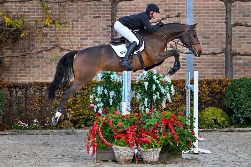 This five-year-old mare by the 1.60m stallion Foncetti vd Heffinck made an immediate impression the moment she entered the arena. Her presence, attitude, and modern type stood out right away and instantly drew attention. Under saddle, her light, effortless trot and smooth, balanced canter are immediately noticeable. She moves with elegance, natural lift, and rhythm — exactly what you want in a modern sport horse. Over the jumps, she shows a remarkable level of maturity for her age. She remains relaxed, thinks along with the rider, and jumps with correct technique and excellent awareness. Every effort is smooth, faultless, and radiates quality. This horse is suitable for anyone who wants to ride a good-jumping horse! This mare combines attitude, rideability, and natural class — qualities that make her highly attractive for sport in the USA. A modern, talented mare who is ready to impress. In the case of direct export to non-EU countries, VAT is no longer applicable (21% becomes 0%). If the export is delayed (but happens as soon as possible), the VAT will be refunded after we have received the official export document (which is drawn up by customs).