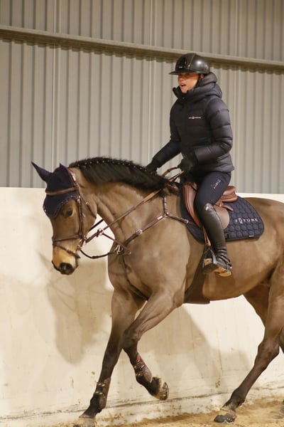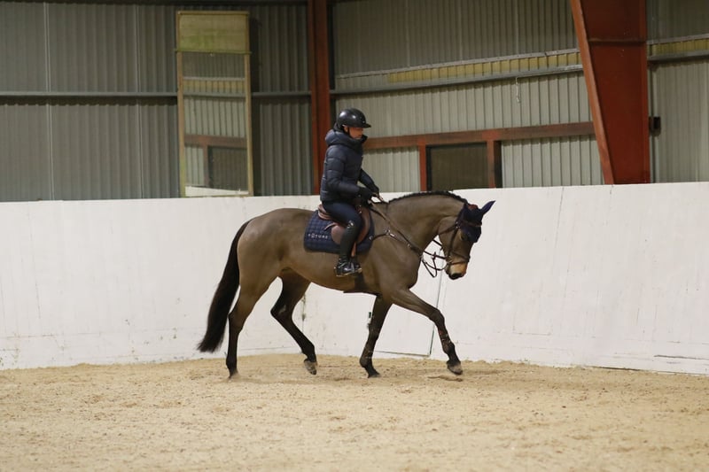 Stute Norn 2019, ca. 1,68 m Mr Idol S - Hunters Scendro Hochwertiges Pferd mit viel Ausdruck. Gut geritten und läuft an den Hindernissen wie am Schnürchen. Hohe Rittigkeit und angenehm zu reiten im Gelände sowie beim Handling. Trainingswettbewerb 110-120. Gutes Röntgenergebnis. Im Oktober 2025 in Deutschland untersucht.