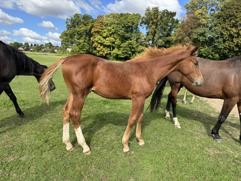 https://esha.horse/Auctions/Item/5534 Magnifiek veulen van Pegase van ’t Ruytershof, afkomstig uit een van de beste moederlijnen van het BWP (BWP 13). Dit veulen beschikt over sterke fundamenten, een mooi formaat en een prachtig karakter. Rechtstreekse afstamming van Infernape van de Caatshoeve (CSI 1.50m), Milow van de Caatshoeve (CSI 1.50m), Lanzarote de Muze (CSI 1.55m), Quel Homme van de Heffinck (CSI 1.60m), CP Aprilla (CSI 1.60m), Souvenir van de Heffinck (CSI 1.60m), … Een zeer veelbelovend veulen, zowel sportief als genetisch, en bijzonder interessant voor wie hem als hengst wil behouden. *Het paspoort werd aangevraagd en het is nog in verwerking bij het stamboek, houdt rekening met mogelijke vertragingen. Magnificent colt by Pegase van ’t Ruytershof, out of one of the best damlines of the BWP (BWP 13). This foal shows strong conformation, excellent size, and a wonderful temperament. Direct lineage includes Infernape van de Caatshoeve (CSI 1.50m), Milow van de Caatshoeve (CSI 1.50m), Lanzarote de Muze (CSI 1.55m), Quel Homme vd Heffinck (CSI 1.60m), CP Aprilla (CSI 1.60m), Souvenir van de Heffinck (CSI 1.60m), … A highly promising foal, both athletically and genetically, making him particularly interesting for those aiming to keep him as a stallion. *The passport has been requested and is still being processed by the studbook, please take possible delays into account. Magnifique poulain par Pegase van 't Ruytershof issu d'une des meilleures souches maternelles du BWP (BWP 13). Ce poulain a de bons points de force, une belle taille et un caractère magnifique. Lignée directe d'Infernape van de Caatshoeve (CSI 1.50.), Milow van de Caatshoeve (CSI 1.50m), Lanzarote de Muze (CSI 1.55m), Quel Homme vd Heffinck (CSI 1.60m), CP Aprilla (CSI 1.60m), Souvenir van de Heffinck (CSI 1.60m), ..... Poulain très prometteur tant au niveau sportif que génétique pour ceux qui veulent le garder comme étalon. *Le passeport a été demandé et il est toujours en cours de traitement par le stud-book, tenez compte des éventuels retards. Wunderschönes Fohlen von Pegase van ’t Ruytershof, aus einer der besten Mutterlinien des BWP (BWP 13). Dieses Fohlen überzeugt mit starker Konstitution, guter Größe und einem hervorragenden Charakter. Direkte Abstammung von Infernape van de Caatshoeve (CSI 1.50m), Milow van de Caatshoeve (CSI 1.50m), Lanzarote de Muze (CSI 1.55m), Quel Homme vd Heffinck (CSI 1.60m), CP Aprilla (CSI 1.60m), Souvenir van de Heffinck (CSI 1.60m), … Ein äußerst vielversprechendes Fohlen – sowohl sportlich als auch genetisch – und besonders interessant für alle, die ihn als Hengst behalten möchten. *Der Equidenpass wurde beantragt und wird noch vom Zuchtbuch bearbeitet, bitte rechnen Sie mit möglichen Verzögerungen.