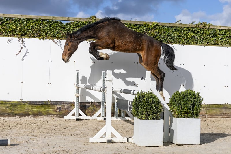 Bernard de Vinck is een paard waar we graag naar kijken. Naar onze mening een zeer compleet model. Nog een wat rauw model, maar dat zien wij juist graag – dit soort paarden groeien naar je toe. Een echte ruwe diamant. Hij is nog maar jong, maar laat al veel balans, techniek en een zeer goede galop zien. Een paard dat zich opvallend makkelijk beweegt, lichtvoetig is en veel kwaliteit uitstraalt. Voor zijn leeftijd al een vrij compleet paard. Hij springt met een goede manier, laat vermogen zien en toont zich voorzichtig met veel overzicht op de sprong. Dit is een paard dat duidelijk belofte heeft voor de toekomst. Vader Orson des Hayettes sprong op 1.60m Grand Prix niveau en is een zoon van Mozart des Hayettes uit de Papillon Rouge-lijn. Een hengst die vermogen, instelling en kwaliteit doorgeeft. Moeder Riviera van Schuttershof is een dochter van Kashmir van Schuttershof (1.60m) en komt uit de zeer sterke Schuttershof-stam. De moederlijn behoort tot de absolute top en brengt talrijke paarden op het hoogste niveau: Fiumicino van de Kalevallei – 1.60m Grand Prix Angel van ’t Hof – 1.60m Sissi van Schuttershof – 1.60m Triomphe van Schuttershof – 1.60m Dakota van Schuttershof – 1.55m U Chin van Schuttershof – 1.55m Knock Out vd Kalevallei – 1.50m Elton John WOW – 1.50m M-Red Velvet P&A – 1.45m Daarnaast meerdere goedgekeurde hengsten en internationale sportpaarden. Een stam die structureel paarden op 1.50m tot en met 1.60m niveau levert.