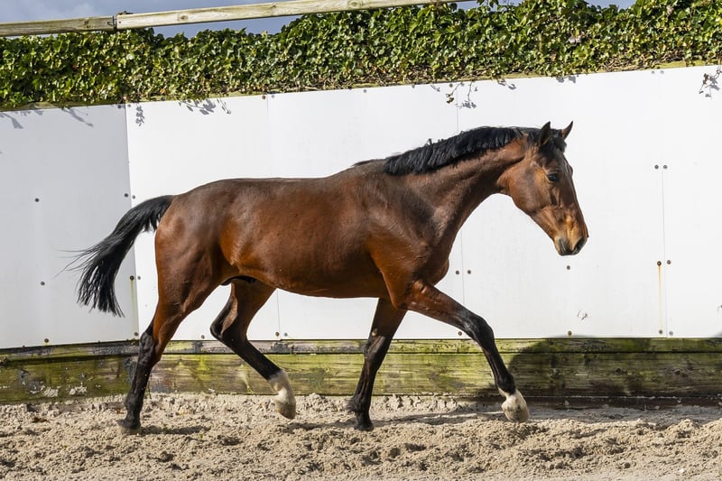 Balou du Marais DD is een mooie, grote tweejarige die opvalt door zijn vermogen en souplesse. Hij beschikt over ruime gangen en laat veel afdruk zien op de sprong. Een paard met een sterke motor dat alles met veel gemak uitvoert. Vermogen en kwaliteit, dat straalt hij duidelijk uit. Hij beweegt lichtvoetig en laat al zien dat hij over veel balans beschikt voor zijn leeftijd. Een paard dat zich makkelijk ontwikkelt en waarvan wij verwachten dat hij later hoge parcoursen zal gaan springen. Wat betreft afstamming is dit echt iets aparts, en wat we tot nu toe zien, belooft dit paard zeer veel voor de toekomst. Vader Equitron Naxcel V springt op het allerhoogste niveau tot en met 1.65m en behoort tot de absolute wereldtop. Hij is een zoon van Balou du Rouet (1.60m) en geeft vermogen, instelling en kwaliteit door. Moeder J’Adore du Marais DD is een dochter van Nabab de Reve (1.60m) en komt uit een zeer sterke prestatielijn. De moederlijn is bewezen met meerdere paarden op niveau: Oxygene du Marais DD – 1.45m Pompidou du Marais DD – 1.40m IQ du Marais DD – goedgekeurde hengst, 1.40m Mi Amor du Marais DD – 1.35m Up To Date van Celle Broedersbos – 1.60m Een stam met kracht, vermogen en prestaties.