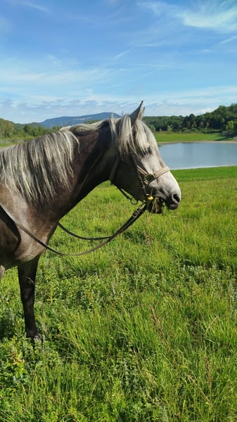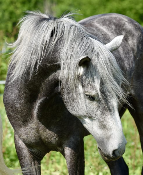 Louaï is a typified Berber gelding. A sensitive horse with the breed-specific intelligence of a Berber horse. He has great movements and a lot of style, a horse that is pleasing and wants to please. Louaï is ridden and currently only goes out on trails, either alone or in a group; this is no problem for him. Since he has lived in a group (mixed gender and age) since birth, he is very sociable and friendly towards his peers. He is easy to handle, good with the farrier, and loads well. We are looking for a sensitive, understanding life partner for Louaï who will gently continue his training according to his age. He knows and loves groundwork; in general, he enjoys being engaged with. A rare gem for the experienced enthusiast!