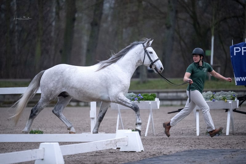 ... a place that wants to promote his abilities in every respect. Koh-I-Noor - called Klausi - impresses with physical and mental maturity. A picture-perfect Barb, who offers at least as much in reality as his above-average lineage promises. With him, it’s not just "Barb" on the label; he also provides everything we expect from a noble representative of his breed! For some time, the desire has grown to have not only a breeding mare as a granddaughter of JASON de la Fôret but also a direct son as another successor in our breeding program. A rare mare of the beautiful Hadji seemed particularly suitable to us - also to secure Agouti in terms of color. Koh-i-Noor, nicknamed "Klausi Klunker," has also confirmed that pairing with exceptional greys ALWAYS represents an enhancement, regardless of the color of the result. His appearance is characterized by the masculinity and superior presence of the outstanding stallions in his lineage. Channur al Najib was also generous enough to pass on some additional color to her son from the blood of Lancelot de l’arbre Mort. With Lohra as his maternal great-grandmother, a very solid Arab-Barb lineage is added, which further enhances his value as a stallion candidate for stable inheritance of traits and foundation security. As we continue to maintain several older stallions in our breeding program, we are looking for a responsible place for Koh, where work under saddle and further breeding use are possible!