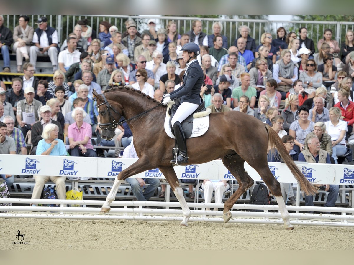 Model student Best For Me OLD – 2016 bronze in the state and fourth place at the Bundeschampionat, 2017 victory in the qualification and final position five at the Bundeschampionat (5j. Dr.), 2018 bronze at the National Championships and placed in the small final in Warendorf (6 j. Dr.) under Patrick Kraft. The father Bretton Woods won with Matthias Alexander Rath to Inter I, after he had reached the bronze position at the World Championships of the five-year-old dressage horses in 2011. The mother Funny Belinda brought the until St. Georges successful Delbar Estivale/Hartwig Burfeind and the also successful in S* dressageS Dalanto (both by Danone I)/Bianca Ramcke. Mother father is the Trakehner Latimer, who became a national champion for four years and then won international junior dressage competitions. The great-grandfather Brentano II brought 25 licensed sons, among them the Bundeschampion and Grand Prix-winning Benetton Dream FRH with Tinne Vilhelmson Silfvén/SWE as well as the Grand Prix winners Barclay with Hubertus Schmidt and Dr. Sven-Günter Rothenberger (2005 European Championship silver) and Brentina with Debbie McDonald (2004 Olympic bronze and 2006 World Championship bronze). Breeding is very interesting with over 43 percent very high proportion of noble blood via the Trakehner Latimer, heel and the thoroughbreds Black Sky xx, Hill Hawk xx and Makuba xx. From the Oldenburg mare tribe of the Edosta II come the certified stallions Special Gold, Sterngold, Landjuwel Gold, Deus, Diamond Gold, Diamo Gold OLD, Exupery, Serano Gold, Sungold, Prince Romancier, Rosengold OLD and Best of Gold.