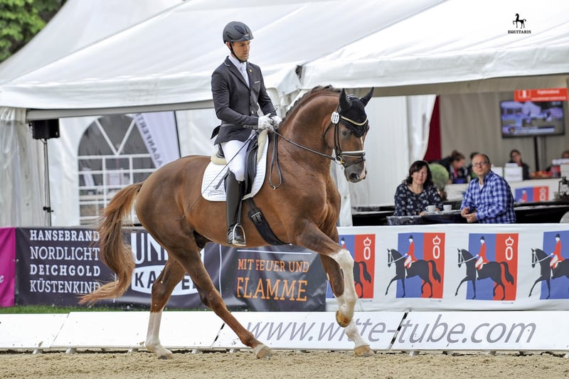 Musterschüler Best For Me OLD - 2016 bronce en el Campeonato Estatal y cuarto puesto en el Bundeschampionat, 2017 victoria en la clasificatoria y quinto puesto en la final en el Bundeschampionat (5yo Dr.), 2018 bronce en el Campeonato Estatal y puesto en la Pequeña Final en Warendorf (6yo Dr.) bajo Patrick Kraft. Su padre Bretton Woods ganó hasta el nivel Inter I con Matthias Alexander Rath tras conseguir el bronce en los Campeonatos del Mundo para caballos de doma de cinco años en 2011. La madre Lustige Belinda también dio a luz a Delbar Estivale/Hartwig Burfeind, que triunfó hasta St. Georges, y a Dalanto (ambos por Danone I)/Bianca Ramcke, que también triunfó en competiciones de doma clásica de nivel avanzado (S*). El padre de la madre es el Trakehner Latimer, que fue campeón de Alemania de equitación a los cuatro años y ganó concursos internacionales junior de doma clásica. El bisabuelo Brentano II tuvo 25 hijos licenciados, entre ellos el campeón de Alemania y ganador del Gran Premio Benetton Dream FRH con Tinne Vilhelmson Silfvén/SWE, así como los ganadores del Gran Premio Barclay con Hubertus Schmidt y el Dr. Sven-Günter Rothenberger (medalla de plata en el Campeonato de Europa de 2005) y Brentina con Debbie McDonald (medalla de bronce en los Juegos Olímpicos de 2004 y en el Campeonato del Mundo de 2006). Muy interesante desde el punto de vista de la cría es la altísima proporción de sangre noble (más del 43%) a través del Trakehner Latimer, Absatz y los pura sangre Black Sky xx, Hill Hawk xx y Makuba xx. La línea materna Oldenburg de Edosta II también incluye los sementales licenciados Special Gold, Sterngold, Landjuwel Gold, Deus, Diamond Gold, Diamo Gold OLD, Exupery, Serano Gold, Sungold, Fürst Romancier, Rosengold OLD y Best of Gold.