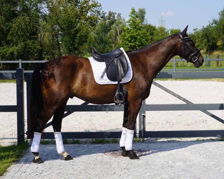 5-year-old all-round partner from our own breeding From our own breeding, we offer a promising, attractive, and charming 5-year-old young horse. He was gently backed at the age of 4. Currently, he is being trained in various disciplines including dressage, jumping, and cross-country, and he enjoys and confidently masters the first jumps. He impresses with three clear, good basic gaits and always shows joy in his work. In handling, he is sweet, cuddly, and has a strong trust in humans. Of course, he is well-behaved for the farrier and loading. An ideal all-rounder for riders who are looking for a young horse that has been trained with patience and care – and is now ready to achieve great things together with his person.
