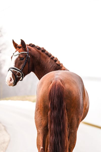Klaki (geb. 2021) ist ein großrahmiges Nachwuchspferd mit ca. 173cm Stockmaß und befindet sich auf Dressurpferde A- Niveau. Er präsentiert sich sehr rittig und bereits gut ausbalanciert - ein Pferd, das für 2026 direkt zum Losreiten bereit ist. Besonders überzeugt seine kraftvolle, bergauf angelegte Galoppade. Klaki wurde schonend und altersgerecht ausgebildet und stammt direkt aus Züchterhand. Sein tolles Interieur macht ihn zu einem zuverlässigen und motivierten Partner im täglichen Training. Ein ideales Nachwuchspferd für Reiter, die viel Wert auf Rittigkeit, Qualität und Perspektive legen.