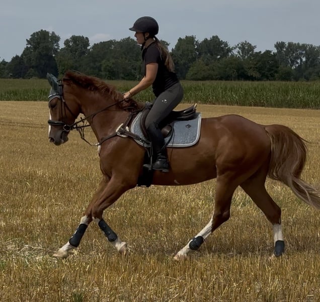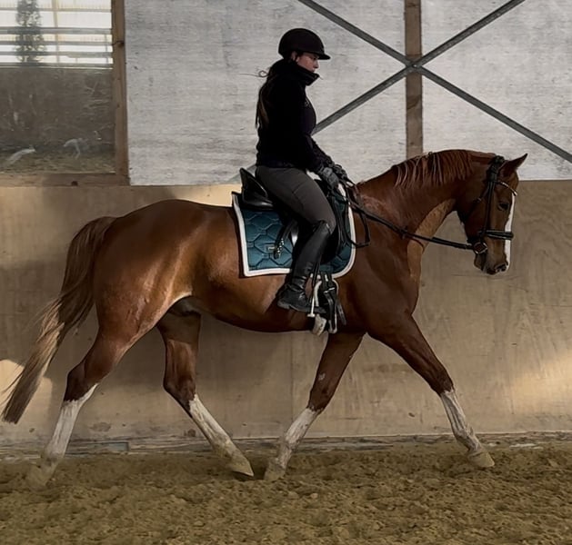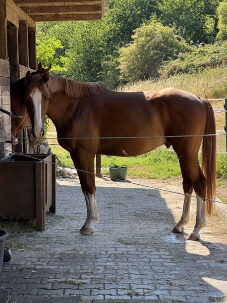 Zum Verkauf steht ein 1,66 m großer Brandenburger Wallach, geboren Juli 2020, der mit seinem verschmusten Wesen, Übersicht und Arbeitsfreude überzeugt. Er kennt die tägliche Dressurarbeit auf Reitpferdeniveau, springt sicher und mit viel Übersicht und zeigt sich sowohl beim Freispringen bis 1,30 m als auch bei Geländesprüngen sehr souverän und unkompliziert. Im Gelände ist er eine echte Lebensversicherung. Fremde Plätze kennt er bereits, Turniere wurden aus Zeitmangel bisher nicht besucht. Im Umgang ist er sensibel und braucht einen Menschen, dem er vertrauen kann. Mit ruhiger, fairer Förderung entwickelt er sich zu einem ehrlichen Partner, der arbeiten und sich bewegen möchte. Ein reines Boxenpferd ist er nicht – das würde ihm weder körperlich noch mental gut tun (tut es ja eigentlich keinem 😉). Er ist barhuf, geht problemlos auf den Hänger, ist geimpft und besitzt einen TÜV von Kopf bis Fuß aus 2025. Eine prophylaktische Chip-OP hinten rechts wurde durchgeführt – er war nie lahm, es bestehen keine Gelenkschäden, und er ist absolut gesund. Er kennt täglichen Auslauf, auch in der Gruppe, ist 24/7 draußen sowie 24/7 Heu gewöhnt – dies benötigt er auch weiterhin, da er sonst schnell an Substanz verliert und ihm langweilig wird. 📌 Wichtig: Abgabe nur in ein pferdegerechtes Zuhause mit viel Bewegung, Auslauf und weiterer Förderung. Ein tolles Nachwuchspferd für Reiter, die einen ehrlichen, feinfühligen Partner suchen und Lust haben, gemeinsam weiter zu wachsen. Bei Interesse oder für weitere Informationen freue ich mich auf Ihre Kontaktaufnahme.