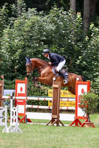 We are selling our 6-year-old up-and-coming show jumper, Lucky Charm. He is very talented, easy to ride, and reliable, making him an excellent choice as an amateur-children-junior horse! Due to his rideability and his three very good basic gaits, he is also well-suited as an eventing horse. He is familiar with trucks, horse trailers, farriers, and trail rides. Currently, he is placed in his first competition season up to 1.25m. There is potential for much more. A truly exceptional young horse with a great future! Please only contact us if you are seriously interested. We also have other interesting show jumpers for sale.