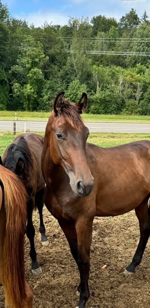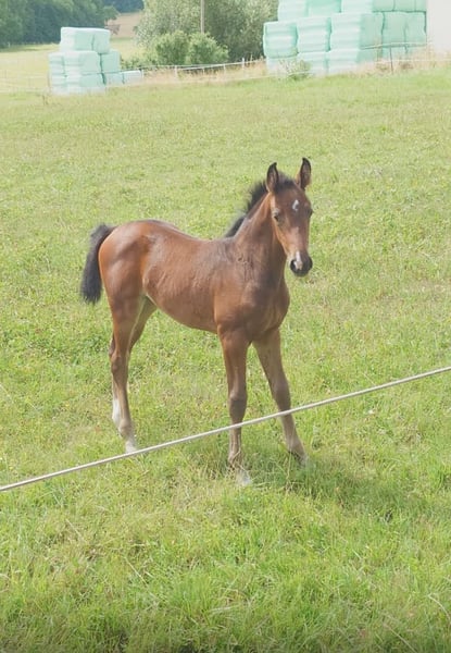 Urocza klacz hodowlana od Quatermana/Rohdiamant, obecnie w ciąży z Diamantenglanz, na sprzedaż. Ma na koncie dwa źrebięta: rocznego ogiera od Morricone, jedno źrebię od For Romance oraz obecne źrebię od Diamantenglanz, widoczne na zdjęciach w tej kolejności. Klacz nie nadaje się już do jazdy. Może służyć wyłącznie do hodowli lub jako koń towarzyszący. Obecnie ma jeszcze źrebię Beifuß i będzie dostępna dopiero po odsadzeniu, jesienią.