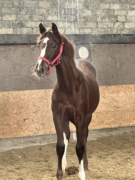 ✨ Zweijähriger Hengst von Zoom – schicker, bewegungsstarker Freizeitpartner mit tollem Charakter ✨ Zum Verkauf steht ein zweijähriger Hengst von Zoom aus sehr guter Abstammung, der durch sein modernes Exterieur, seine ausdrucksstarken Bewegungen und seinen freundlichen Charakter überzeugt. Er zeigt bereits jetzt sehr gute Bewegungen in allen drei Grundgangarten und bringt damit beste Voraussetzungen für eine solide weitere Ausbildung mit. Eine aktuelle Röntgenuntersuchung hat ergeben, dass er einige Gelenkchips sowie eng stehende Wirbel im Rücken hat. Er war lange Zeit sehr überbaut, weshalb wir davon ausgehen, dass sich die Rückenthema mit zunehmender Muskulatur und Entwicklung wieder verbessern wird. Aufgrund dieser Befunde kommt er nicht für den gehobenen Turniersport infrage, ist aber ideal geeignet für jemanden, der sich ein braves, schickes und lernfreudiges Pferd als zukünftigen Freizeit- oder Allroundpartner wünscht. Kurzinfos: • Abstammung: Zoom x Londonderry • Alter: 2 Jahre • Geschlecht: Hengst • Stockmaß: ca. 1,63 m (im Wachstum) • Bewegungen: sehr gut in allen drei Grundgangarten • Charakter: brav, menschenbezogen, unkompliziert • Einsatzbereich: Freizeit, Bodenarbeit, leichte sportliche Nutzung Ein toller Youngster für jemanden, der Freude daran hat, ein sympathisches und typvolles Pferd in Ruhe weiterzuentwickeln. Standort: Mülheim an der Ruhr