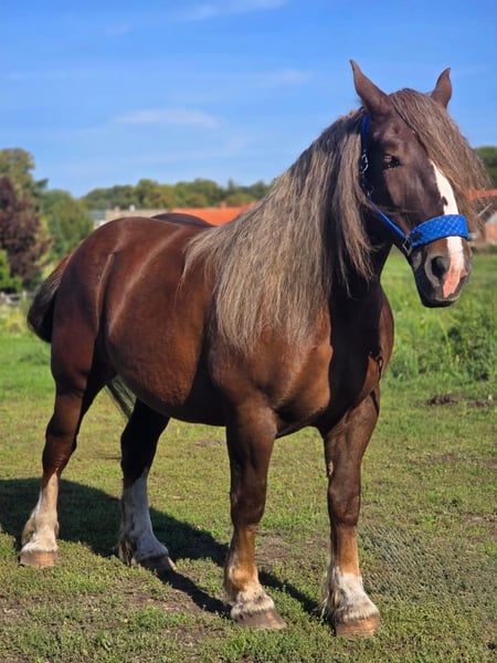 **Sales Advertisement: Beautiful Breton Mare for Sale** We offer a charming Breton mare for sale. **Features:** - **Breed:** Breton - **Gender:** Mare - **Year of Birth:** 2019 - **Color:** Dark Bay - **Height:** 165 cm - **Breeding:** Breeding This mare impresses with her strong character and spirited nature. She is well-trained and suitable for both leisure riding and competition. With her exceptional appearance and friendly demeanor, she is the ideal partner for riders of all experience levels. She would also be excellent for breeding purposes. If you are interested or need further information, please feel free to contact us. Visit us and see for yourself this wonderful mare!