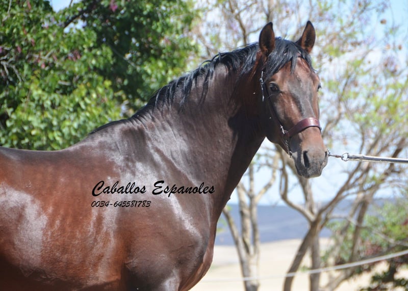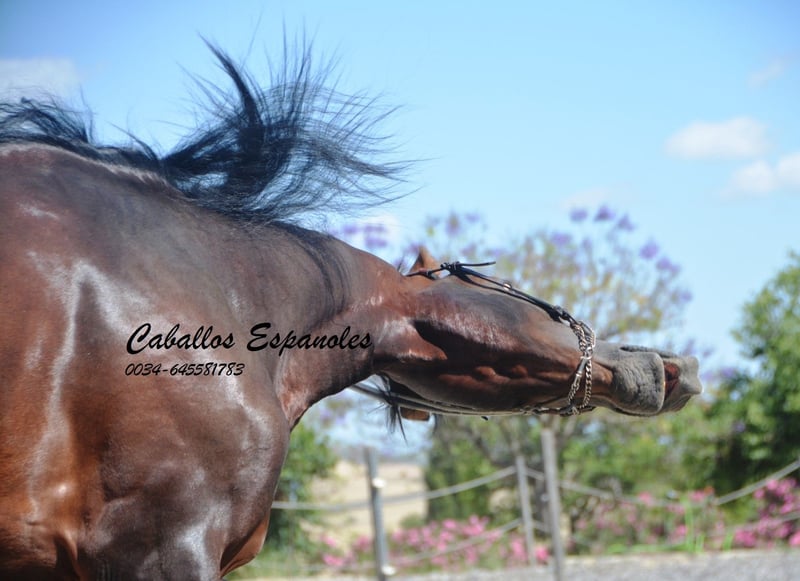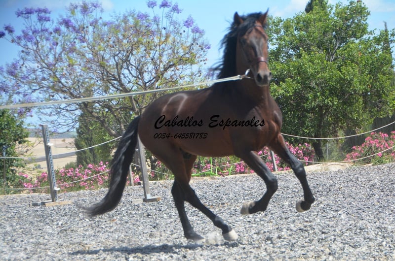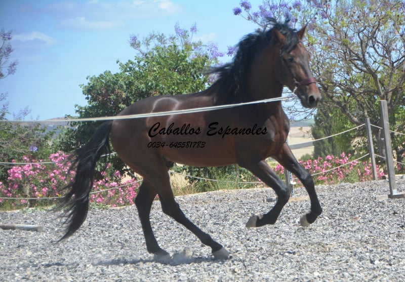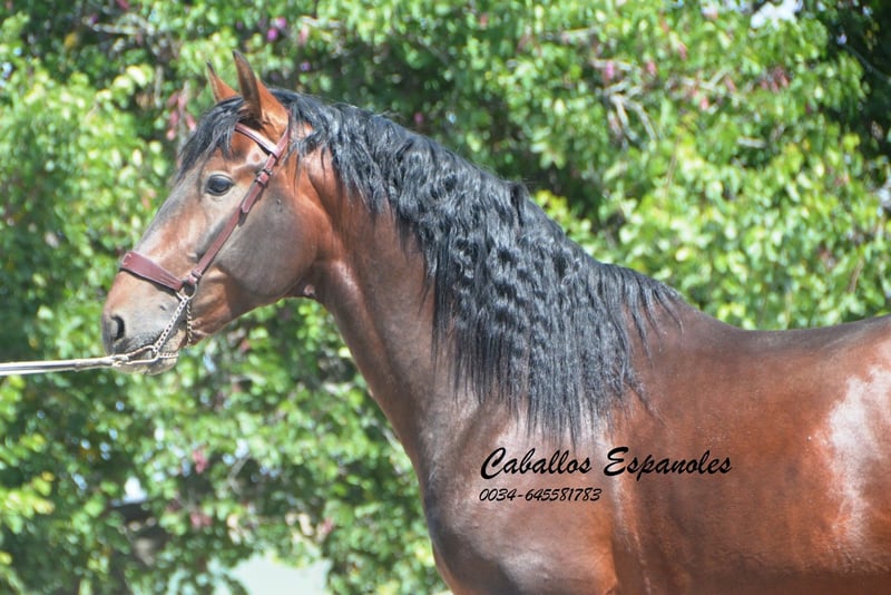Este hermoso semental PRE tiene una estructura grande y sólida, con una base correcta. El semental está equipado con tres excelentes movimientos básicos. El joven ha sido montado en los movimientos básicos, flexiones laterales, trabajo en la mano, piaff, y cambios de trote por encima, en galopes volantes. Es trabajador y está concentrado en el jinete. Un semental joven que todavía tiene mucho por aprender, pero que seguramente será un caballo excepcional. Ascendencia: Padre y madre llevan la marca de Yeguada Militar. Aquí se combina mucha sangre de doma, como Lebrijano, Agente, Lego. El caballo se vende por encargo. Puede quedarse con nosotros en entrenamiento. El examen veterinario puede organizarse a corto plazo. Transporte internacional disponible.
