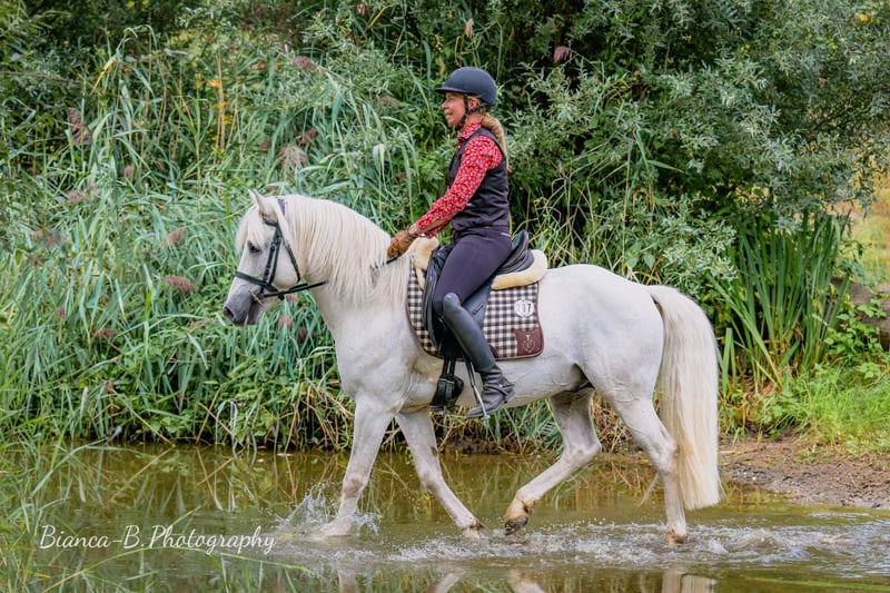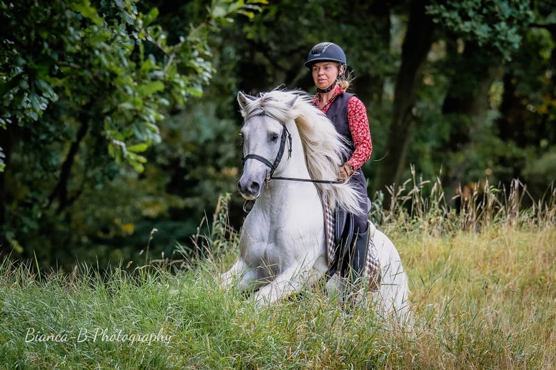 Zarter kleiner Hengst mit Flügeln, Ikarus ist ein sehr temperamentvoller Sohn seines Vaters. Mit dem selben sorgenvollen Augenausdruck wie Ufano schaut er sich alles gern erst einmal an. Um dann die erlernten Dinge auch durchzuziehen. Das Pferd ist in der Ausbildung derzeit sicher bis WE-A (gesiegt und platziert). Er arbeitet bereits gut am Rind und wird von uns weiter mit Freude gefördert. Er besticht durch ausserordentlich gute Bewegungen in Dressur wie Dressurtrail. Zeigt sich auf internationalen Turnieren aber noch immer ein wenig beeindruckt. Was wir gut finden, er wird weder frech, noch übereifrig. Er überlegt und versteht. Er kommt optisch eher nach seinem Großvater Jouvas und auch die schwebenden Bewegungen sind wohl aus der Seite der Anpaarung. Mutter Tres Jolie du Issel ist eine super zuverlässige Stute in Gelände, auf Messen, am Rind. Meine persönliche Lebensversicherung, aus der ich mit Gier mehr Fohlen hätte ziehen sollen. Da unsere Pferde aber maximal alle 2 Jahre nach Abschluss ihrer Ausbildung zur Zucht eingesetzt werden, haben wir bisher erst 4 ihrer wundervollen Fohlen. Für die Qualität leider wenig, aber für meine Einstellung zum Pferd ist jedes davon ein echtes Juwel. Wir sind gespannt, wohin seine Ausbildung in der Kategorie Arbeitspferde / Working Equitation mit diesem Pferd geht. Vielversprechend, feinfühlig, HOT. Eine kleine Granate aus der Camargue.