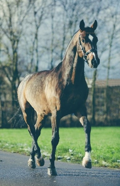 Un athlète de bout en bout, bien typé et aux performances clairement définies. Caracas B convainc par ses bonnes allures et ses sauts remarquables en termes d'aptitude, de technique des jambes et de bascule. Il est particulièrement maniable et doté d'une agréable ardeur au travail. Caracas B a passé un très bon test de performance des étalons à Adelheidsdorf en 2015 (note générale de 8,35 ; note de saut de 8,88) et, après des victoires et des classements en épreuves de saut d'obstacles, il connaît aujourd'hui un succès constant en épreuves de saut M et S sous la selle de Jan-Carsten Weber. Les descendants les plus âgés atteignent actuellement l'âge de participer à des compétitions et sont porteurs de grands espoirs. Le père Charilan, un fils au grand gabarit de Calido I, déjà légendaire de son vivant, n'a été que brièvement à la disposition de l'élevage. Il a été très bien classé dans les épreuves de saut d'obstacles et a produit plusieurs chevaux de saut d'obstacles jusqu'au niveau S. Il a également été le père d'une grande famille de chevaux de saut d'obstacles. Sa mère Chanel a elle-même connu le succès en saut d'obstacles de base. Son père Cranach a été finaliste du Bundeschampionat et s'est classé sportivement jusqu'en classe difficile. La grand-mère Paquita est la propre sœur du reproducteur Pablito (PB Hann., USA). Son père Pablo était déjà une personnalité d'étalon éblouissante dans ses jeunes années. Il a été vainqueur en série d'épreuves de saut d'obstacles et a participé avec succès au Championnat fédéral des chevaux de saut allemands. De plus, Pablo, qui est très fréquenté par les éleveurs, a produit plusieurs poulains et chevaux de vente aux enchères très bien payés ainsi que des fils approuvés. En 1992, il a reçu la prime principale I b après l'évaluation de l'épreuve de performance et de la première année de poulains. Avec Arsenik et Steinhäger, des reproducteurs de chevaux de saut hautement éprouvés se trouvent dans les générations postérieures. La lignée maternelle hanovrienne 849/Steinreiche (par Steinhäger-Ester II-Freddy III-Almsport) est originaire de l'ancienne station traditionnelle de Sulingen.