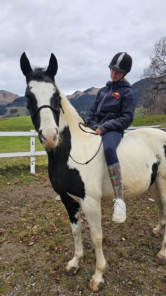 Schweren Herzens verkaufen wir unsere Kessy. Kessy war nun zwei Jahre bei uns. Bei ihrer Vorbesitzerin wurde sie als Therapiepferd eingesetzt und lebte im Offenstall in einer harmonischen Herde. Auch wir wollten sie gerne in unsere bestehende Laufstall-Herde integrieren. Leider hat sich das aufgrund unserer sehr gefestigten Herdenstruktur nicht so entwickelt, wie wir es uns gewünscht hätten. Kessy hat einen freundlichen und sanften Grundcharakter, benötigt aber einen Reiter, der sich klar durchsetzen kann. Bei unsicheren oder unerfahrenen Reitern übernimmt sie sonst gerne selbst die Richtung. Ihre Gänge sind sehr angenehm zu sitzen und bereiten viel Freude. Wir wünschen uns für Kessy einen selbstbewussten, einfühlsamen Menschen, der ihr Sicherheit gibt und ihren Charakter zu schätzen weiß.