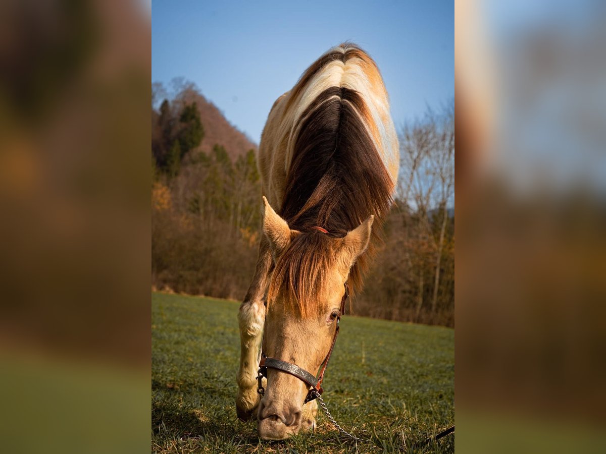 Das 4-jährige Curly Horse, Wallach, sucht einen liebevollen Platz ohne sportliche Ambitonen. Der Wallach ist roh und Passgänger