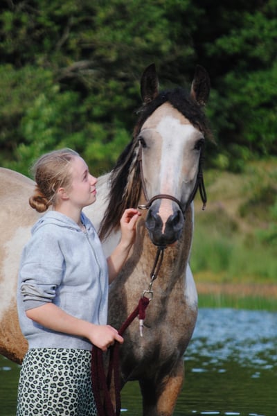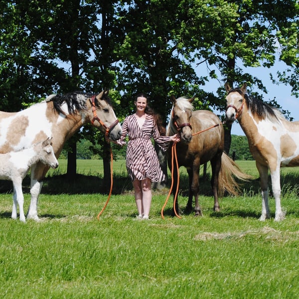 Heavenlysmiles Jolly Jolly ist unsere hypoallergene Curly Horse Stute. Sie ist 1,55 m/1,58 m groß und feiert diesen Sommer ihren achten Geburtstag. Jolly ist eine sehr gute Mutter und hat bereits vier Fohlen zur Welt gebracht. Ihr letztes Fohlen, King, ist gerade geboren, und Jolly ist nun bereit für eine fantastische Reitkarriere 😉 Sie ist angeritten und kann geritten werden, hat aber noch nicht viel Reiterfahrung, da sie unsere Zuchtstute war. Sie ist sehr brav und überaus lieb. Sie wurde immer täglich betreut und war immer von Kindern umgeben. Sie war immer bei uns auf dem Bauernhof, kennt also die Maschinen und die Hoftiere. Ob Sie mit dem Pferdeanhänger zur Show, zum Tierarzt oder einfach nur zum Schwimplatz fahren – Jolly ist rundum zufrieden! Kurz gesagt: Ein fantastisches Curly Horse, an dem Sie viel Freude haben werden! Wir fragen 12.000 € (ohne MwSt.) für sie. Für weitere Informationen senden Sie mir bitte eine Nachricht.