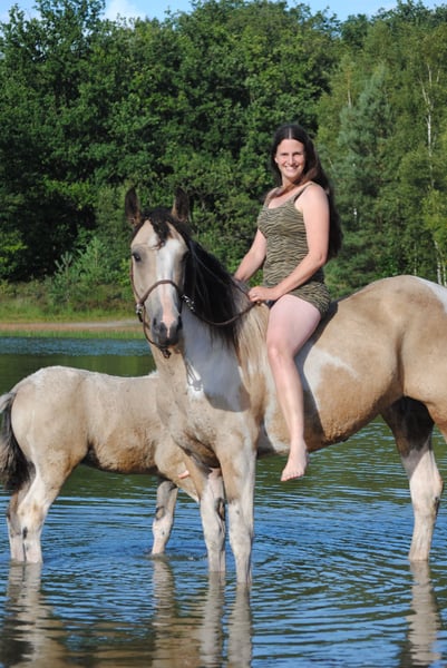 Heavenlysmile’s Jolly Jolly is onze hypoallergene Curly merrie. Ze is 1.55/1.58, deze zomer is het alweer 8jaar geleden dat ze bij ons is geboren. Jolly is een zéér goede moeder, ze heeft 4 veulens gekregen. Haar laatste veulen King is net van haar af en Jolly is nu toe aan een geweldige rij carriere 😉 Ze is zadelmak, ze kent het rijden maar verder nog niet veel kilometers gemaakt omdat ze onze fokmerrie was. Ze is zeer braaf en echt heel lief. Is altijd dagelijks in handen geweest en heeft altijd kinderen om haar heen gehad. Ze heeft altijd bij ons op de boerderij gestaan, dus kent ook de machines en de boerderijdieren. Op de trailer mee naar de keuring, de dierenarts of gewoon even lekker gaan zwemmen, voor Jolly is alles prima!! Kortom een geweldige Curly Horse om heerlijk van te gaan genieten! We vragen 12.000Euro excl btw voor haar. Voor meer informatie stuur gerust een berichtje