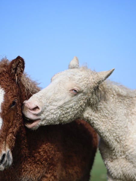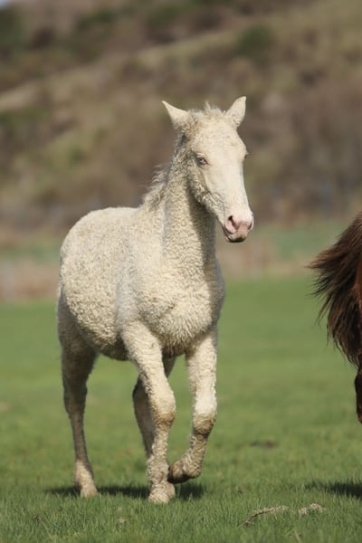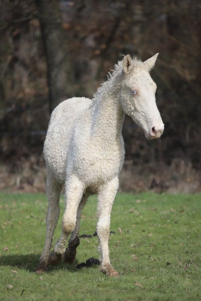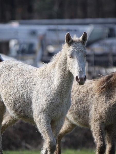 Magnifique poulain Curly d’un an, avec un modèle harmonieux et un mental exceptionnel. 🧬 Dual gene : SP6 / KRT25 🎨 Robe : Double Crème Overo 📏 Taille adulte estimée : 1m45 – 1m50 environ Poulain avec un tempérament très gentil, proche de l’humain et agréable au quotidien. Il est déjà bien manipulé : ✔ Licolé ✔ Donne les pieds ✔ Suit en main ✔ Voyage bien en van Avec sa génétique intéressante, sa robe rare et son bon caractère, il pourra convenir parfaitement comme futur étalon, tout en restant un excellent partenaire de loisir ou d’élevage.
