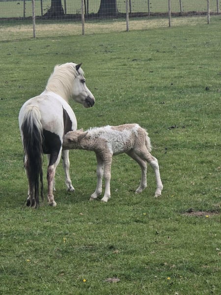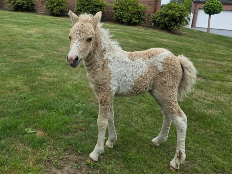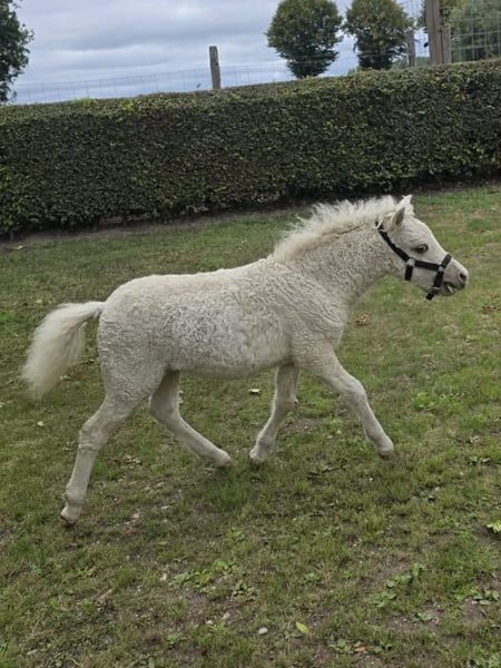 Super cute Mini Curly stallion looking for a new home Our beautiful 1-year-old Mini Curly stallion Zephyr is looking for a loving new home. Zephyr is a special palomino pinto and also carries the silver gene, which makes him genetically very interesting for breeding. He has a soft curly coat and a very friendly and gentle character. His father is a Curly stallion of 93 cm and his mother is an American mini mare of 85 cm. Zephyr comes from American Curly registry bloodlines and has full pedigree papers. ✔ Fully panel tested ✔ Carries the SP6 Curly gene ✔ Full pedigree ✔ NMPRS passport ✔ Very sweet character ✔ Good with children Zephyr is a beautiful little stallion with a lovely expression and an interesting genetic background. We are looking for a good and loving home where he can grow up and receive lots of attention. For more information you can send a WhatsApp message to: +31 6 38766741