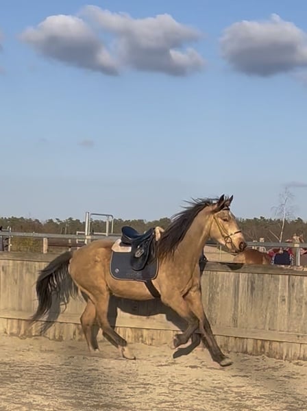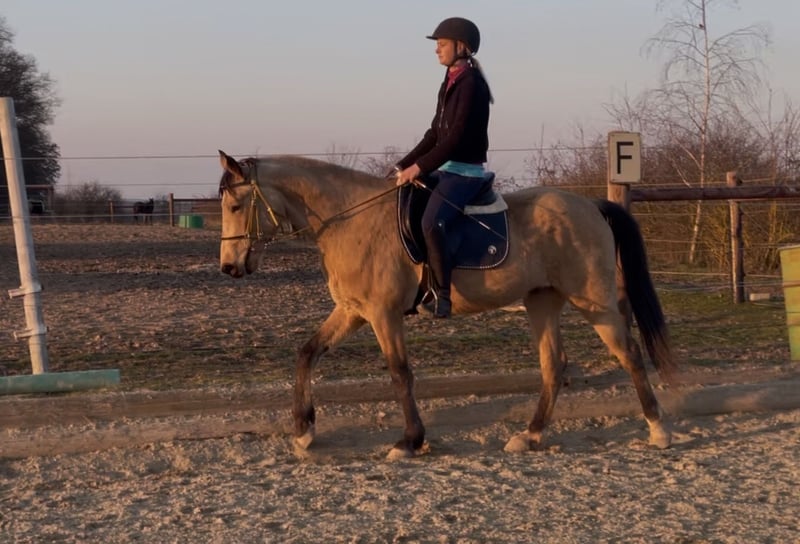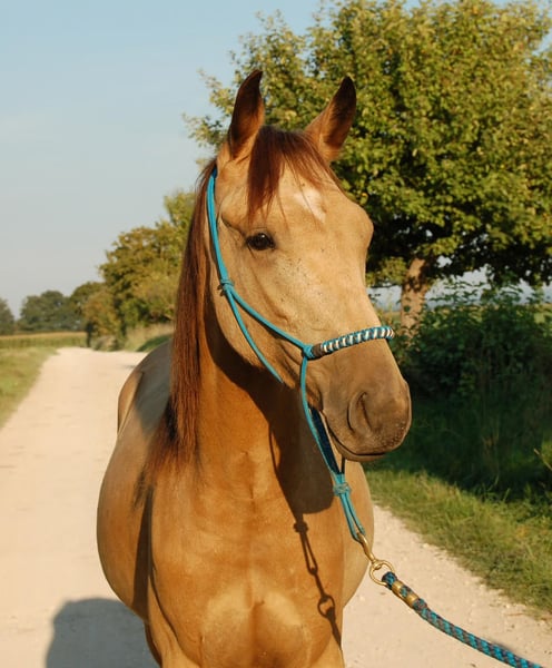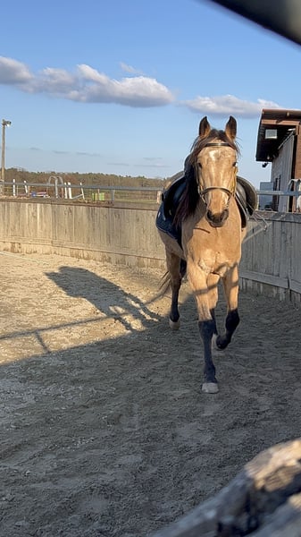 Hallo, ich bin Boy from Heaven. Man sagt, ich sei ein echtes Goldstück – sowohl im Charakter als auch im Erscheinungsbild. Aber am liebsten bin ich einfach dein Pferd. Einer, der dich am Tor begrüßt, wenn du kommst. Einer, der sich freut, Zeit mit dir zu verbringen, ganz egal ob wir gemeinsam neue Abenteuer erleben oder einfach nur zusammen sind. Ich bin 4 Jahre alt und noch dabei, die Welt zu entdecken. Dabei gebe ich mir große Mühe, alles richtig zu machen. Ich höre gut zu, lerne schnell und finde es schön, wenn man mir ruhig und fair zeigt, was ich tun soll. Viele bewundern meine bedachte Art, trotz meines jungen Alters. Das kann ich schon: * Bodenarbeit macht mir Spaß – ich arbeite aufmerksam und gerne mit * als Dreikäsehoch war ich viel als Handpferd im Gelände, auch hier bin ich brav und entspannt unterwegs * bei Wippe & Podest bin ich Profi und probiere mutig Neues aus * beim Schmied und Verladen bin ich artig und unkompliziert * Schritt, Trab und Galopp unter dem Sattel mit ersten taktklaren Töltansätzen Aufgewachsen bin ich in der Herde – ich verstehe mich gut mit anderen und habe gelernt, wie man sich benimmt. Menschen finde ich besonders spannend. Mit dir gemeinsam loszuziehen, das gefällt mir am meisten. Manchmal spürst du vielleicht schon meinen taktklaren butterweichen Tölt – ich glaube, darin steckt noch einiges und ich freue mich darauf, mit dir durch Wälder und Wiesen zu gleiten. Ich suche jemanden, der nicht nur ein Pferd möchte, sondern einen Partner. Jemanden, der mich begleitet, mir Zeit gibt und mit mir wächst. Vielleicht bist du genau dieser Mensch? Dann komm mich doch besuchen. Ich warte schon am Tor auf dich. Dein Boy Beide Eltern sind US Importe, RHBAA registriert. Geboren: April 2022 Größe: ca: 1,60 m Vater: A Nugget from Heaven Mutter: Betternowthanlater